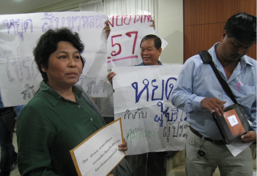 บรรยากาศช่วงเวลา 10.00-11.30 น. เครือข่ายผู้บริโภครออยู่หน้าห้องประชุมที่คณะกรรมการกิจการโทรคมนาคม(กทค.)กำลังประชุมอยู่ ทางเลขาธิการ กสทช. จึงเข้ามาเจรจาและขอรับหนังสือไว้แทน แต่เครือข่ายผู้บริโภคไม่ยอมและนางสาวบุญยืน ได้เคาะประตูห้องประชุมอย่างแรงอีก 2 รอบ จนกระทั่ง พ.อ.เศรษฐพงค์ มะลิสุวรรณ รองประธานกสทช.และประธานกทค. ต้องสั่งเลิกประชุม กทค. และออกมารับหนังสือ เหตุการณ์จึงได้คลี่คลายลง ซึ่งเหตุการณ์วันนี้ทำให้การประชุม กทค. ล่ม