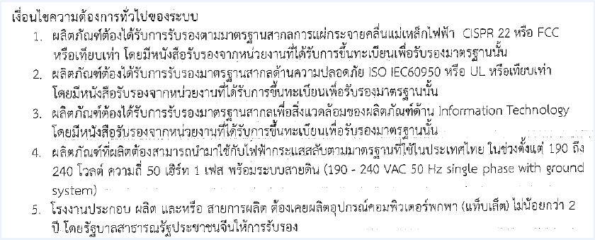 ตามเงื่อนไขความต้องการทั่วไปของระบบที่ทำไว้ในสัญญาระบุว่า “ผลิตภัณฑ์ที่ผลิตต้องสามารถนำมาใช้กับไฟฟ้ากระแสสลับตามมาตรฐานที่ใช้ในประเทศไทยในช่วงตั้งแต่ 190-240 โวลต์ ความถี่ 50 เฮิร์ท 1 เฟส พร้อมระบบสายดิน (190-240 VAC 50 Hz single phase with ground system)” ซึ่งเป็นที่ทราบกันดีว่าการที่ปลั๊กจะมีระบบสายดินต้องมี 3 ขา