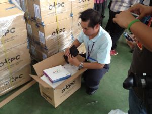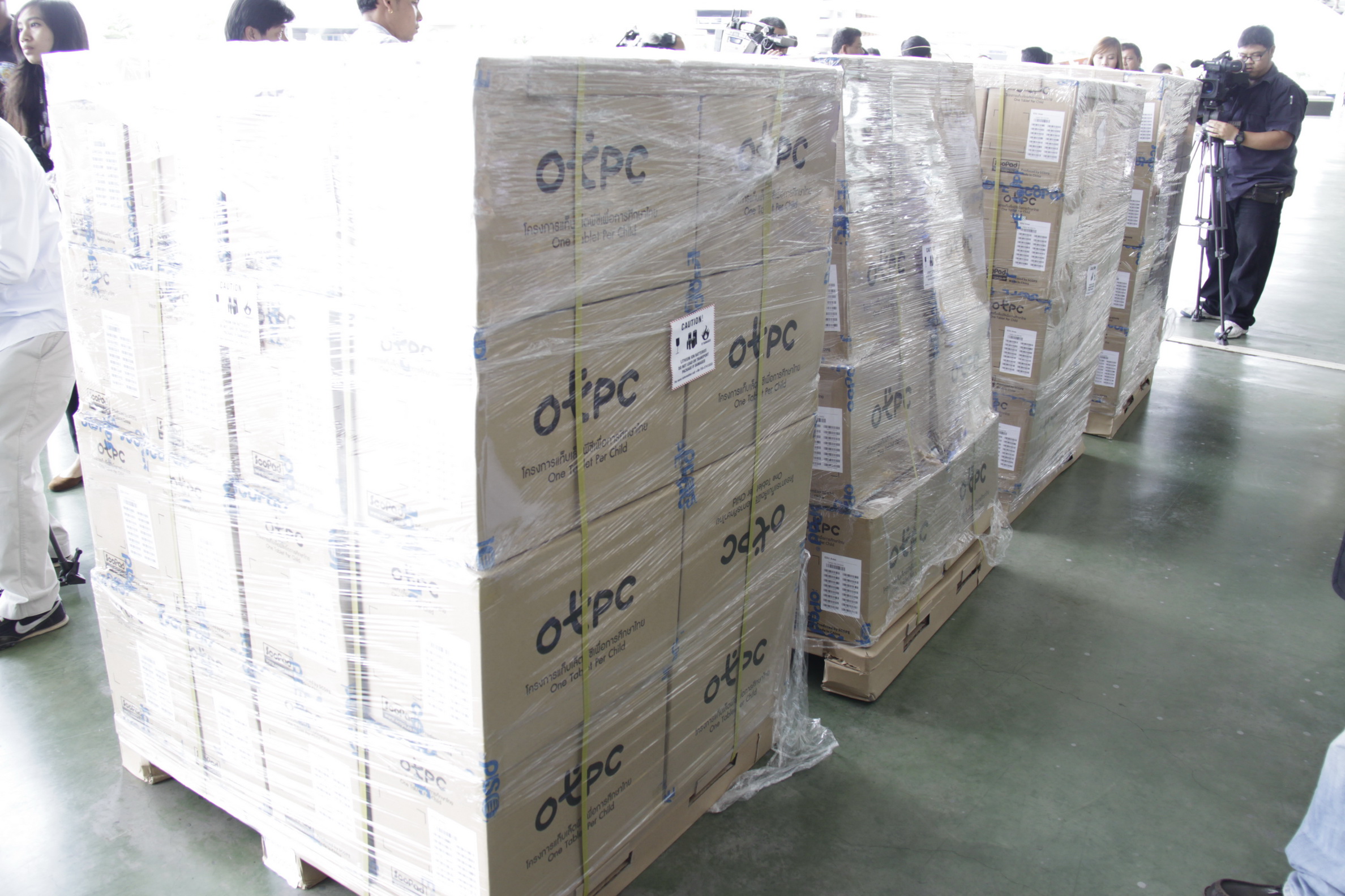 วันนี้ (22 มิ.ย.) เวลา 05.35 น.แท็บเล็ตป.1 ล๊อตแรกจำนวน 10,000 เครื่องจากทั้งหมด 400,000 เครื่อง ในโครงการคอมพิวเตอร์มือถือสำหรับนักเรียนทุกคน (One Tablet PC Per Child) ที่บริษัท เสิ่นเจิ้น สโคป ไซแอนทิฟิก ดีเวลลอปเมนต์ จัดส่งมาทางสายการบินเฟดเอกซ์ (Fedex) เที่ยวบิน FX5779 ถึงสนามบินสุวรณภูมิแล้ว