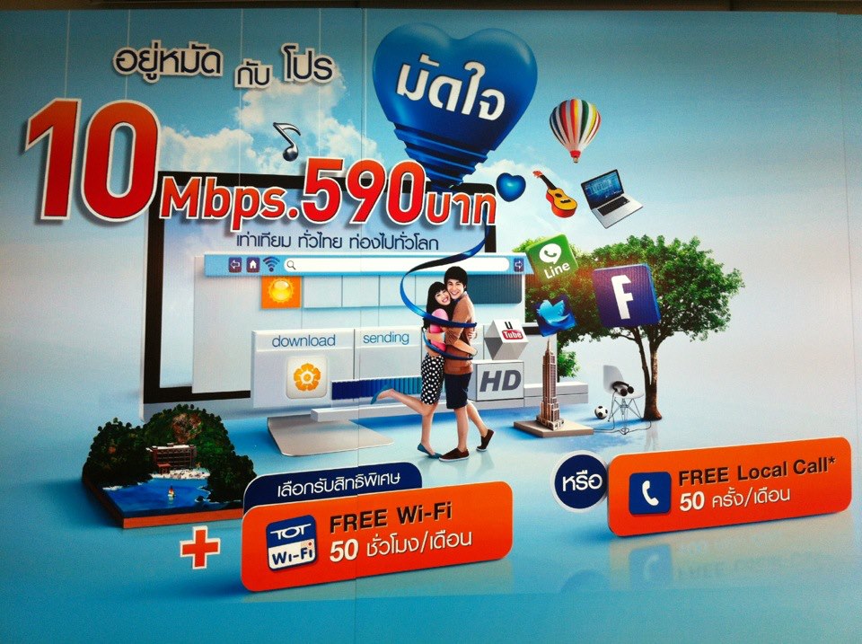 ทั้งนี้ แพ็คเกจ “มัดใจ” ของทีโอที มีระดับความเร็วให้เลือกตั้งแต่ 4-20 เมกะบิต ได้แก่ ความเร็ว 6 เมกะบิต/512กิโลบิต ราคา 550 บาท/เดือน แถมฟรีใช้โทรศัพท์บ้านโทรฟรีในพื้นที่ 30 ครั้ง/เดือน หรือใช้บริการทีโอที ไว-ไฟ ความเร็ว 4 เมกะบิต ฟรี 30 ชั่วโมง/เดือน, ความเร็ว 10 เมกะบิต/512กิโลบิต ราคา 590 บาท/เดือน แถมฟรีใช้โทรศัพท์บ้านโทรฟรีในพื้นที่ 50 ครั้ง/เดือน หรือใช้บริการทีโอที ไว-ไฟ ฟรี 50 ชั่วโมง/เดือน โดยลูกค้าปัจจุบันที่ใช้บริการบรอดแบนด์ของทีโอทีในราคา 590 บาท/เดือนจะได้เพิ่มความเร็วเป็น 10 เมกะบิตอัตโนมัติโดยไม่ได้บริการแถมอื่นๆ ขณะที่แพ็คเกจความเร็ว 12เมกะบิต/512กิโลบิต ราคา 690 บาท/เดือน แถมฟรีใช้โทรศัพท์บ้านโทรฟรีในพื้นที่ 100 ครั้ง/เดือน หรือใช้บริการทีโอที ไว-ไฟ ฟรี 100 ชั่วโมง/เดือน, ความเร็ว 15 เมกะบิต/1 เมกะบิต ราคา 1,290 บาท/เดือน แถมฟรีใช้โทรศัพท์บ้านโทรฟรีในพื้นที่ 150 ครั้ง/เดือน หรือใช้บริการทีโอที ไว-ไฟ ฟรี 150 ชั่วโมง/เดือน และแพ็คเกจความเร็ว 20 เมกะบิต/1 เมกะบิต ราคา 1,890 บาท/เดือน แถมฟรีใช้โทรศัพท์บ้านโทรฟรีในพื้นที่ไม่จำกัดจำนวนครั้ง/เดือน หรือใช้บริการทีโอที ไว-ไฟ ฟรี ไม่จำกัดชั่วโมง/เดือน ซึ่งแพ็คเกจนี้เมื่อสมัครใช้งานจะมีผลผูกมัด 12 เดือน