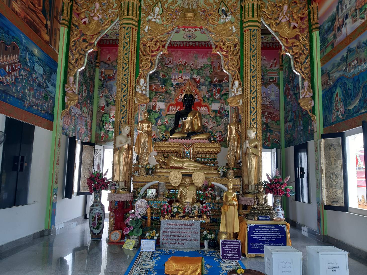 ตั้งอยู่ที่ริมฝั่งแม่น้ำยมทางทิศตะวันออก ตรงข้ามกับวัดกำแพงดิน ณ หมู่บ้านคลองพันจอ เลขที่ 16 หมู่ที่ 6 ต.กำแพงดิน อ.สามง่าม จ.พิจิตร “วัดศรีศรัทธาราม” เดิมชื่อ “วัดคลองประจอ” มีโบสถ์หลังใหญ่ทาสีขาวทั้งหลัง บริเวณทางขึ้นหน้าโบสถ์จะมีรูปปั้นจระเข้ขนาดใหญ่นอนขนาบข้างบันได 2 ตัว ส่วนบริเวณราวบันไดทั้ง 2 ข้างจะมีรูปปั้นจระเข้กำลังกลืนกินนรีนอนอยู่ 4 ตัว มี “หลวงพ่อดำ” เป็นพระพุทธรูปปางมารวิชัย ขนาดหน้าตักกว้าง 62 นิ้ว สูง 90 นิ้ว เป็นพระประธานในอุโบสถ์ ทั่วทั้งองค์เป็นสีดำ จึงได้นามว่าหลวงพ่อดำ