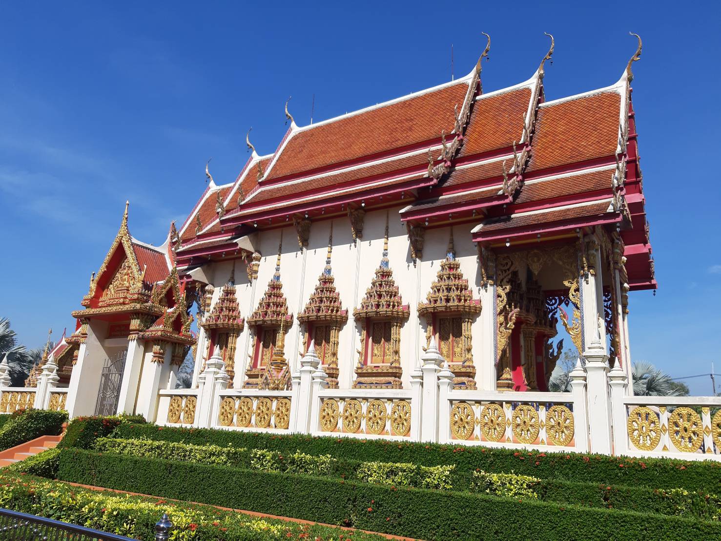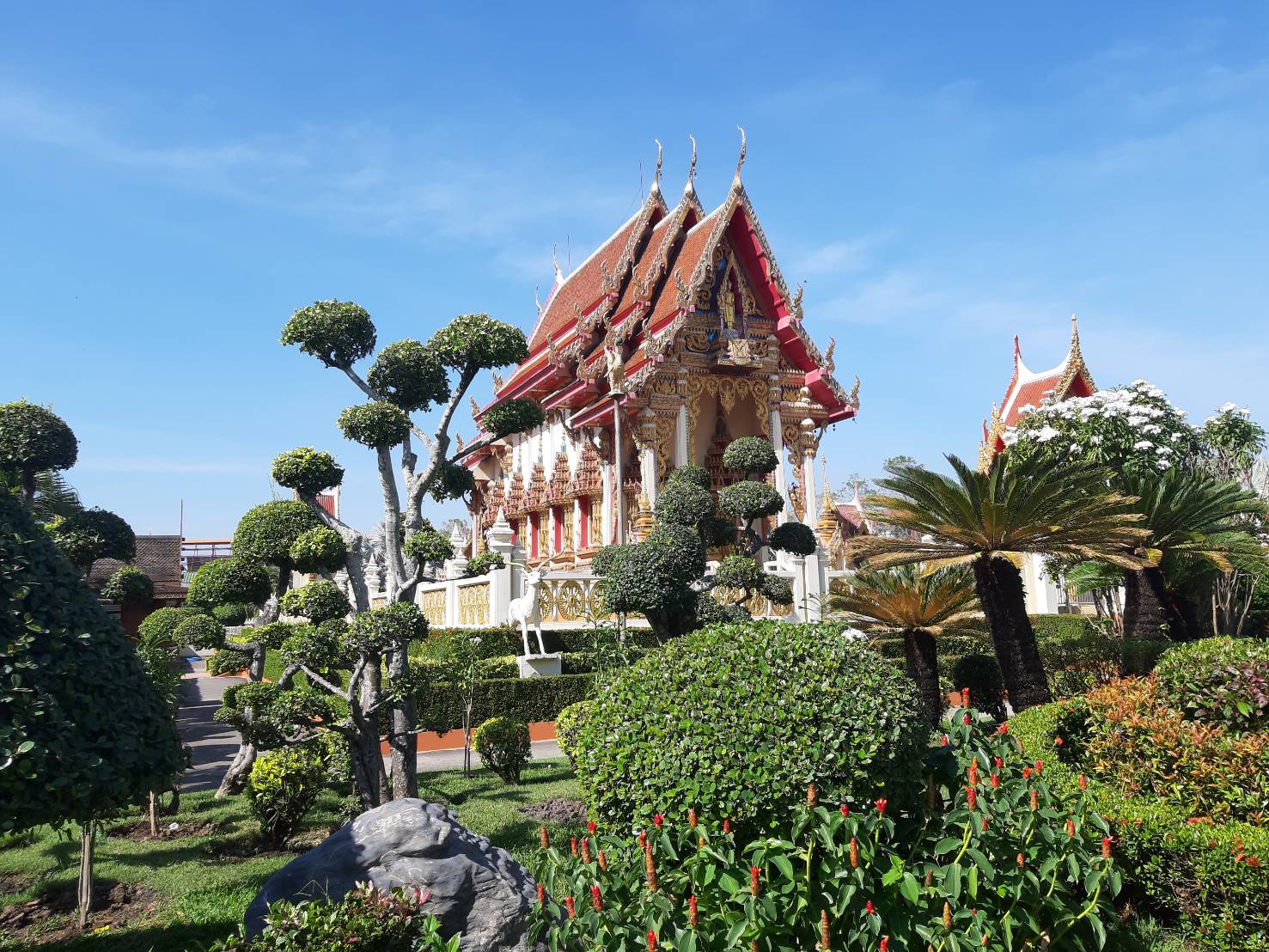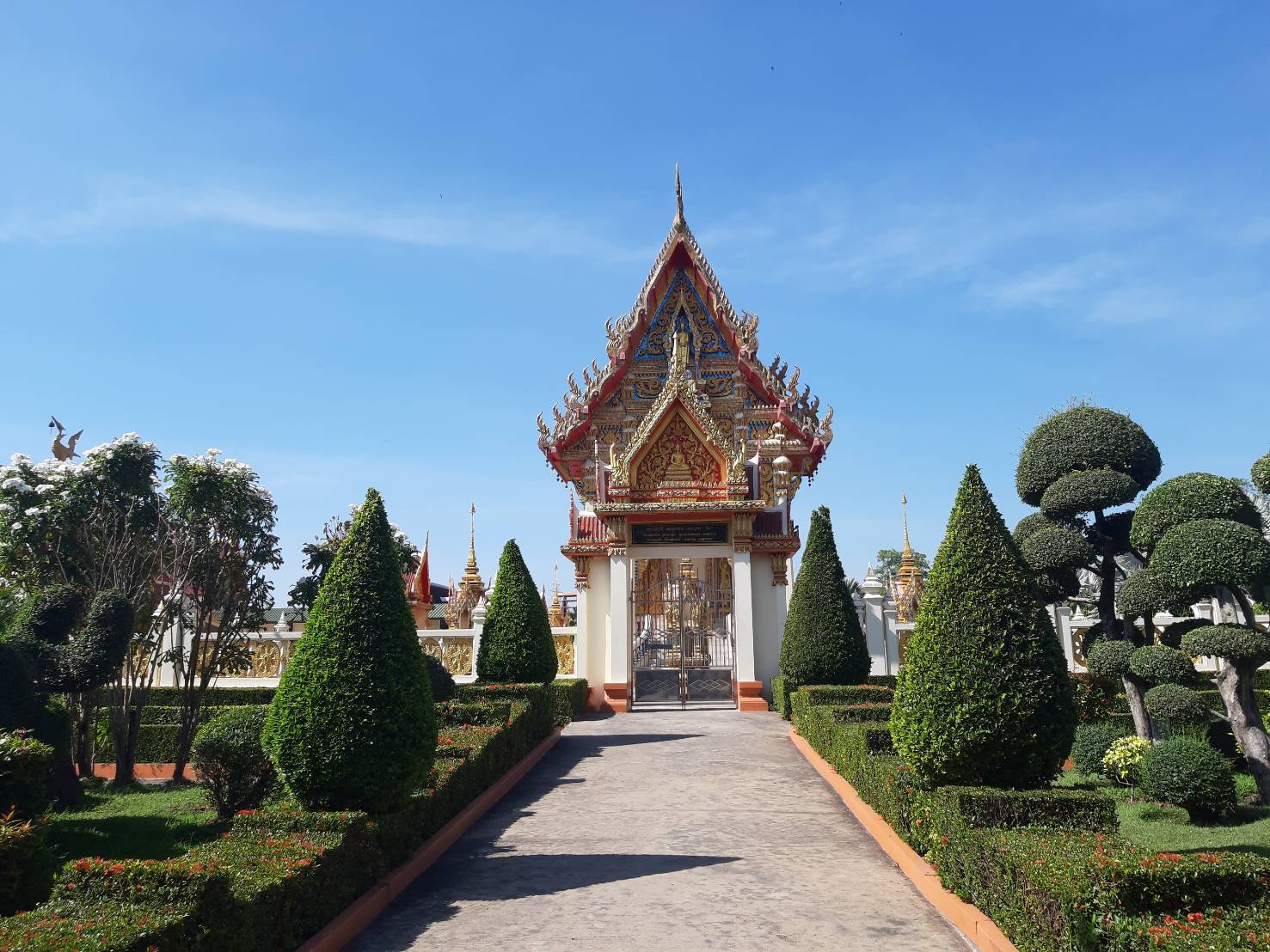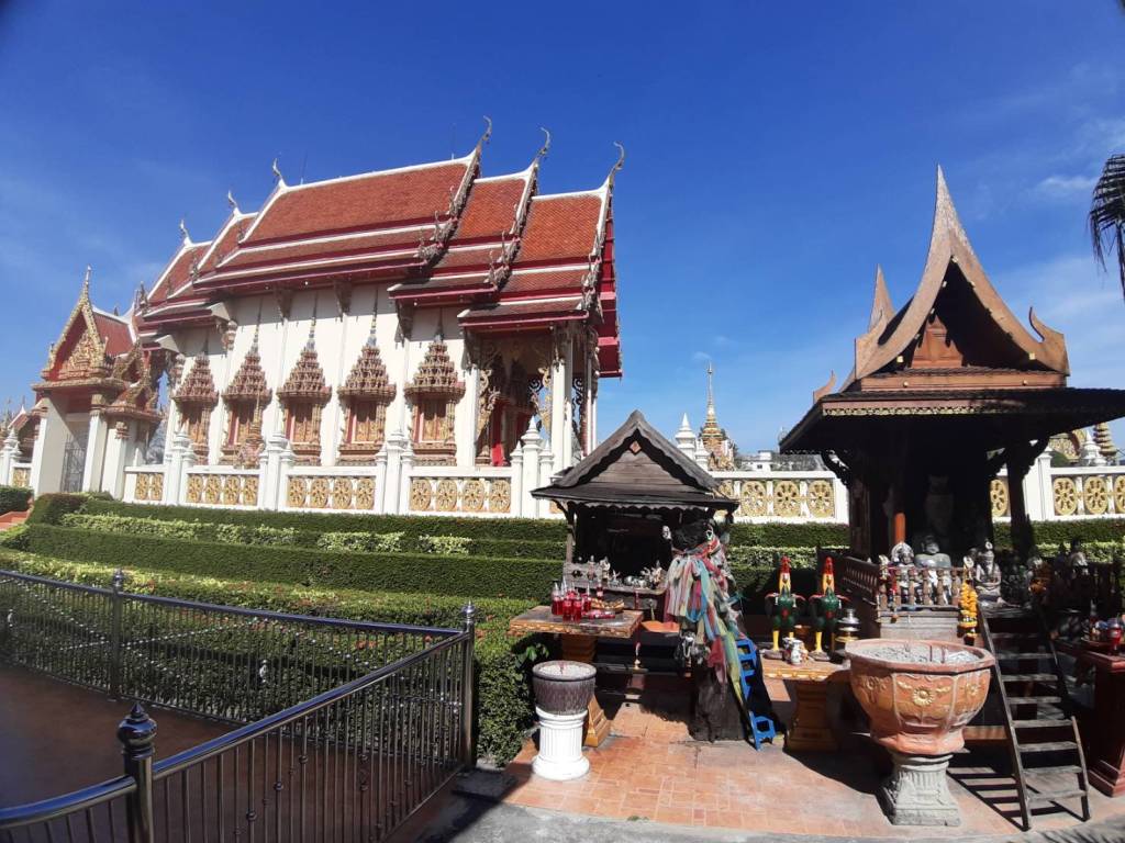 ตามประวัติเล่าว่า หลวงพ่อยิ้มแสดงปาฏิหาริย์ลอยน้ำมาโผล่ที่ปากคลองแปดระหว่างเขตวัดกับบ้านเถ้าแก่พูน ประมาณ ต้น พ.ศ. 2410 โผล่แต่เกศ ปู่โต๊ะเป็นคนอัญเชิญขึ้นมาประดิษฐานไว้หน้าโบสถ์หลังเก่า ต่อมานำไปไว้ที่ศาลาฤาษี จากนั้นได้อัญเชิญมาประดิษฐานที่หน้าวัด ปัจจุบันได้อัญเชิญมาประดิษฐานอยู่หน้าศาลาการเปรียญของวัดธัญญะผล นอกจากนี้ยังมีพระพุทธรูปศักดิ์สิทธิ์ที่มีอายุกว่า 105 ปี (หลวงพ่อโต) โดยภายในวัดมีคลองสามารถให้อาหารปลาได้ (วังมัจฉา)