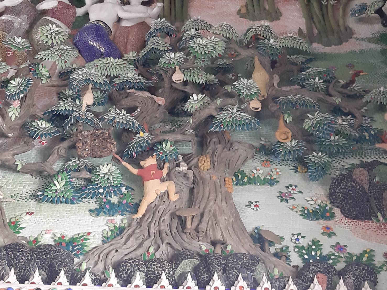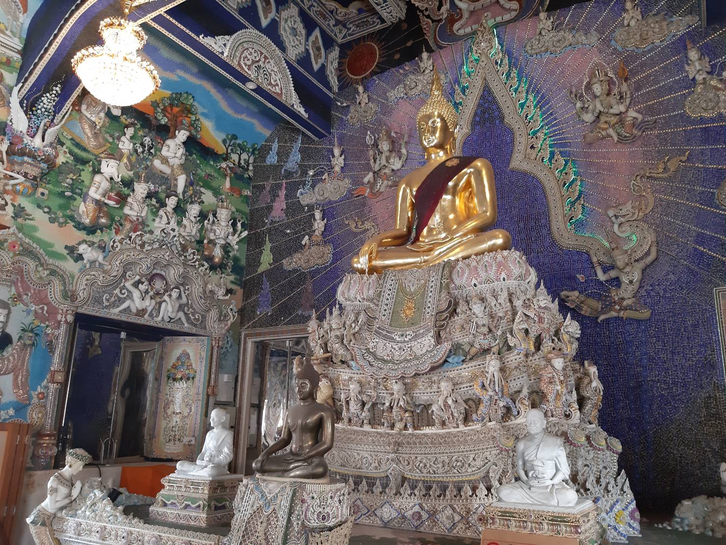 “วัดปริวาส” มีหลวงพ่อสุโขทัย เป็นพระประธาน ภายในโบสถ์มีประติมากรรมปูนปั้นเบญจรงค์ เป็นงานศิลปะนานาชาติร่วมสมัย ประกอบด้วย ภาพเทพเจ้า เทวดานางฟ้า ฤาษี ยักษ์มารสรรพสัตว์ต่าง ๆ จนถึงตัวละครสำคัญในมหากาพย์ชื่อดังอย่างรามเกียรติ์ สามก๊ก มังกรหยก รวมทั้งภาพยนตร์และการ์ตูนชื่อดังที่ใคร ๆ ก็รู้จัก อย่าง วินนี่ เดอะ พูห์ หมีอ้วนสีเหลือง กับการปีนเก็บน้ำผึ้ง ซึ่งเป็นหนึ่งในประติมากรรมปูนปั้นที่อยู่ภายในโบสถ์