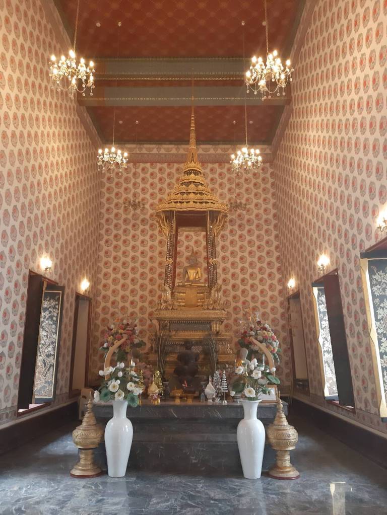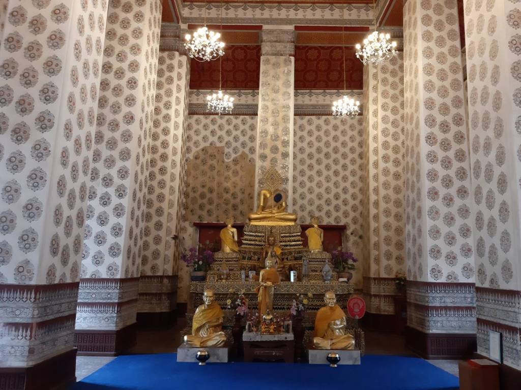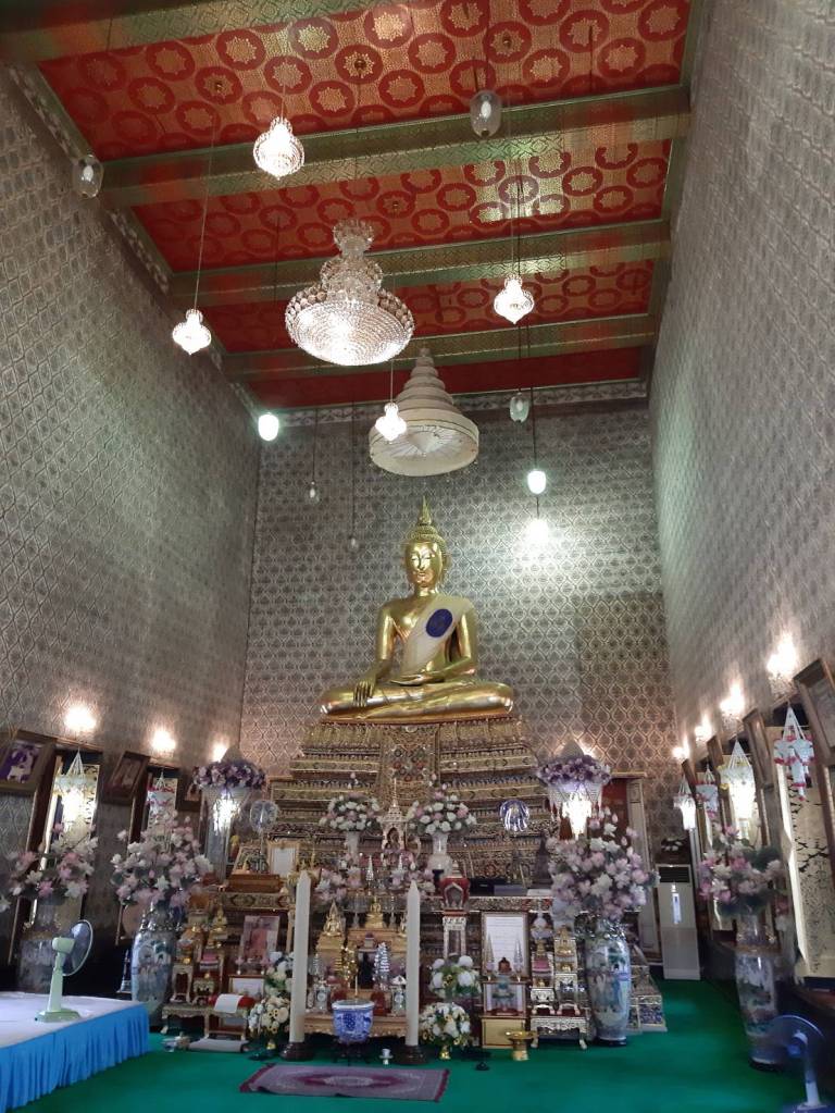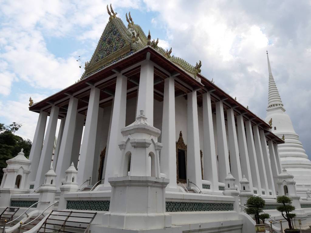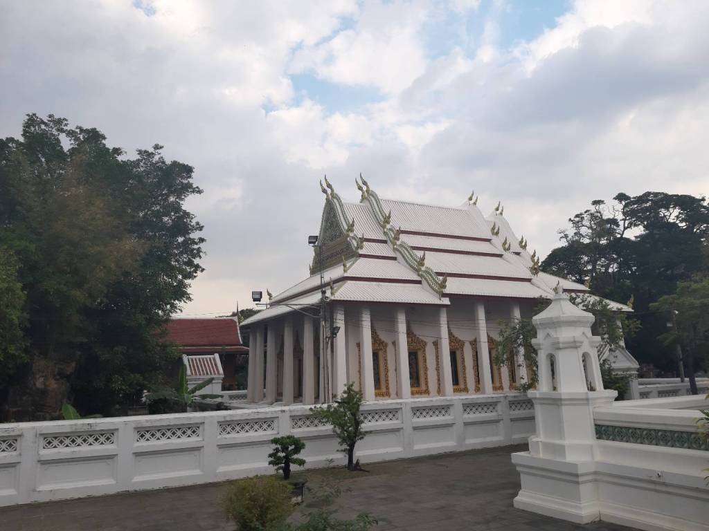 ใกล้ ๆ กัน เป็นที่ตั้งของวิหารหลวง มี “พระพุทธปฏิมาชัยวัฒน์” เป็นพระประธาน ตกแต่งด้วยศิลปะแบบไทยปนจีน จิตรกรรมฝาผนังภายในเขียนสีเป็นลายดอกไม้ร่วงสีอ่อนหวานเหมือนกับในพระวิหาร ด้านหลังโบสถ์มองออกไปจะเห็นเจดีย์สีขาวดูโดดเด่น เป็นเจดีย์ทรงลังกา มีความสูงจากฐานถึงยอดประมาณ 45 เมตร ภายในบรรจุพระบรมธาตุ