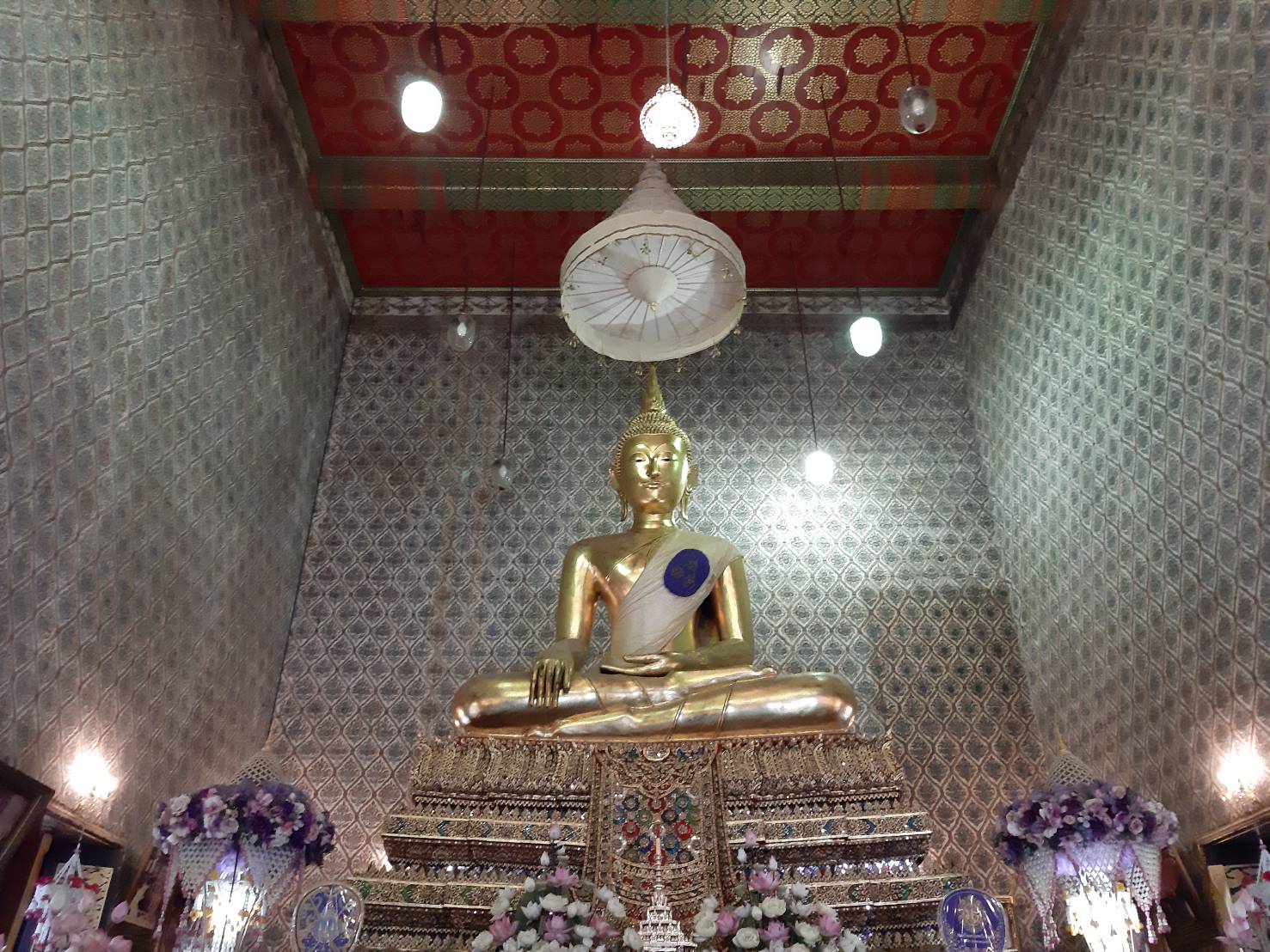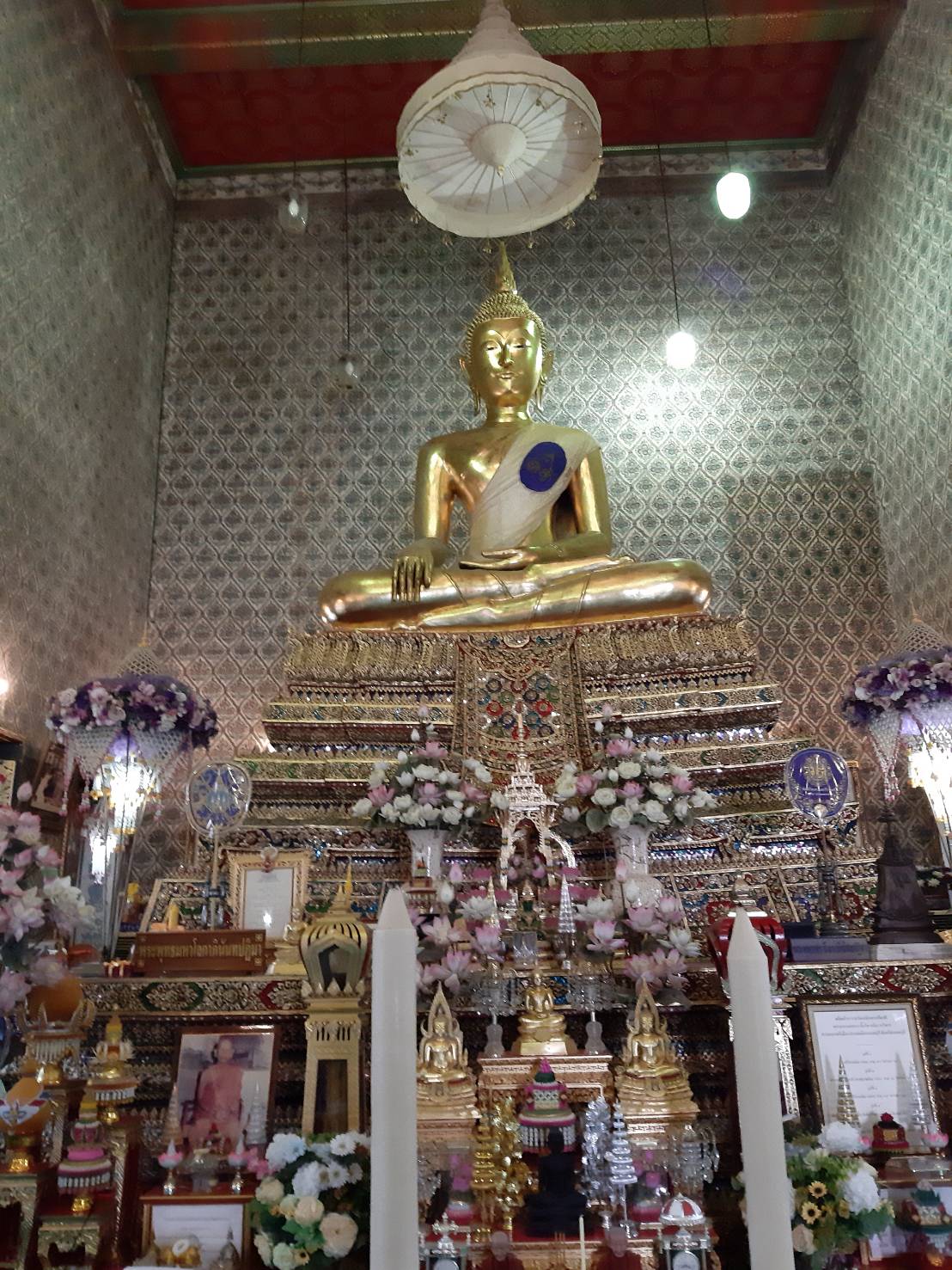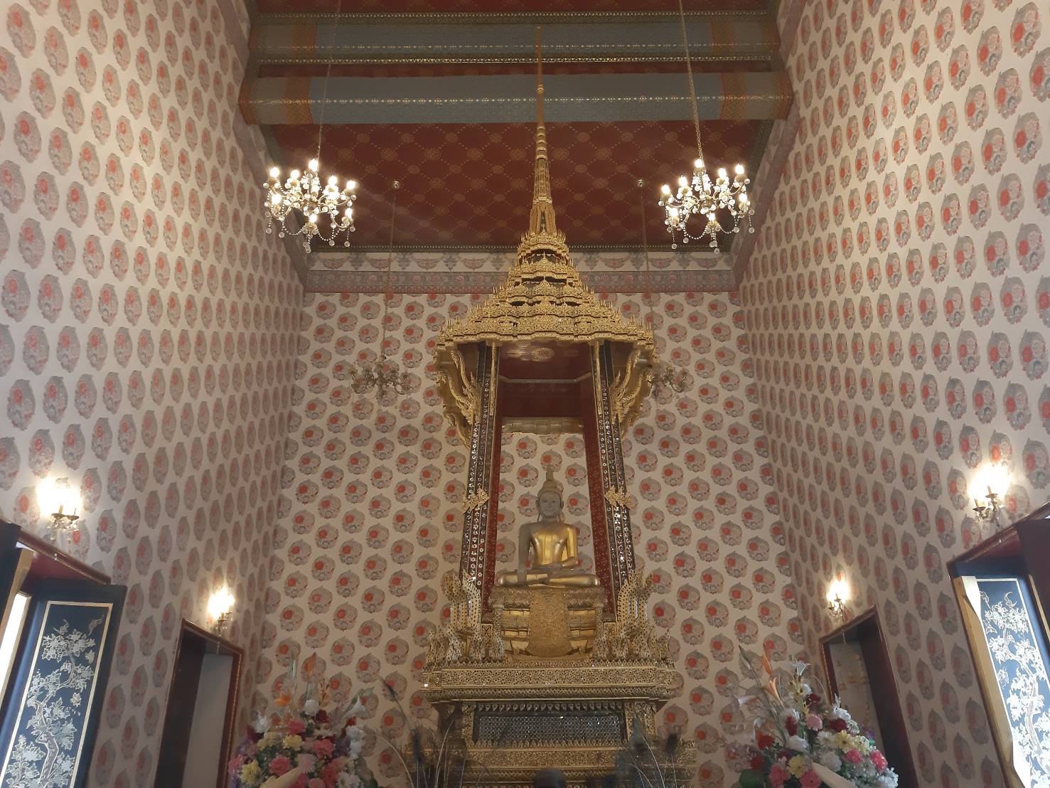 ใกล้ ๆ กัน เป็นที่ตั้งของวิหารหลวง มี “พระพุทธปฏิมาชัยวัฒน์” เป็นพระประธาน ตกแต่งด้วยศิลปะแบบไทยปนจีน จิตรกรรมฝาผนังภายในเขียนสีเป็นลายดอกไม้ร่วงสีอ่อนหวานเหมือนกับในพระวิหาร ด้านหลังโบสถ์มองออกไปจะเห็นเจดีย์สีขาวดูโดดเด่น เป็นเจดีย์ทรงลังกา มีความสูงจากฐานถึงยอดประมาณ 45 เมตร ภายในบรรจุพระบรมธาตุ
