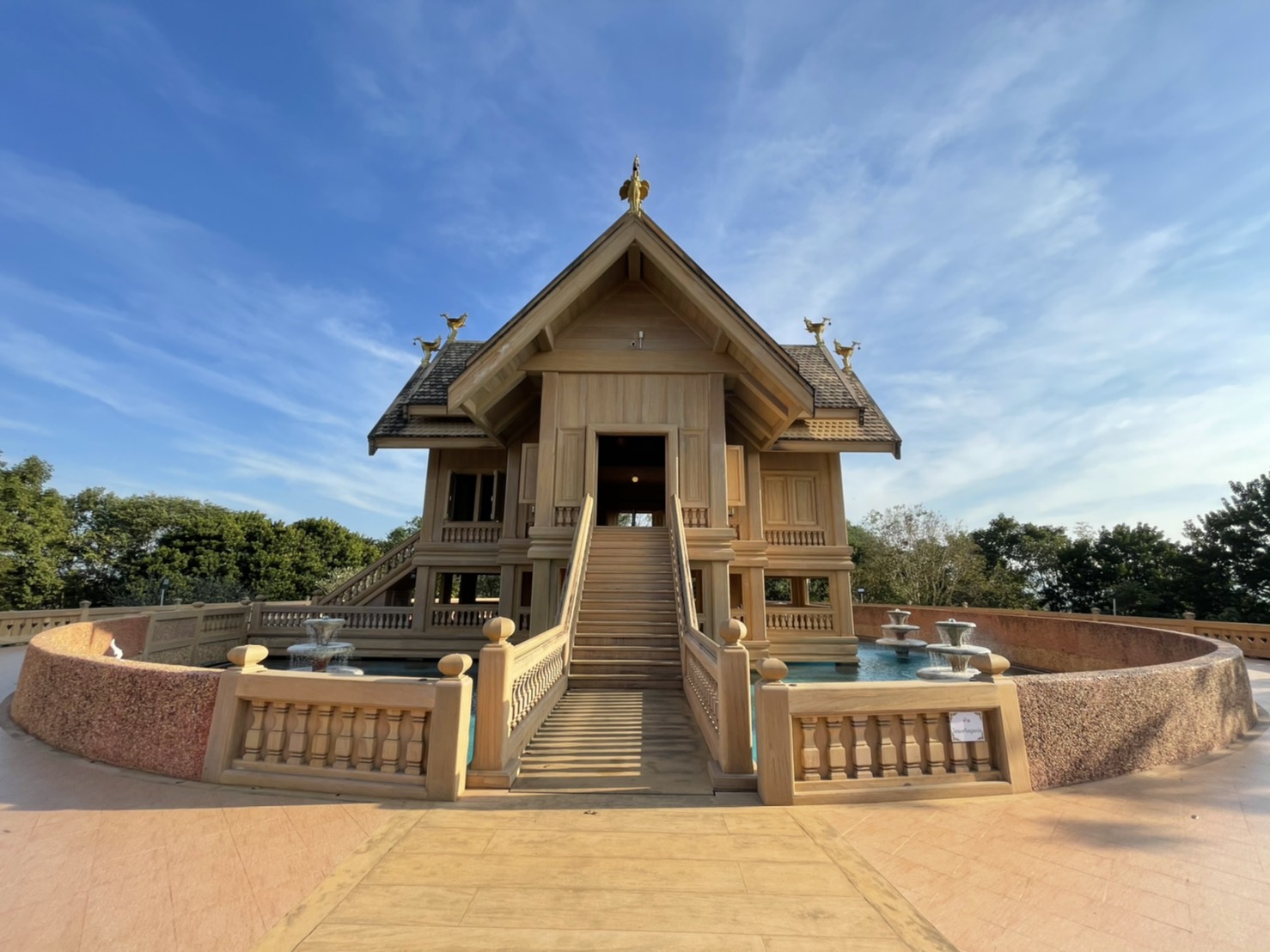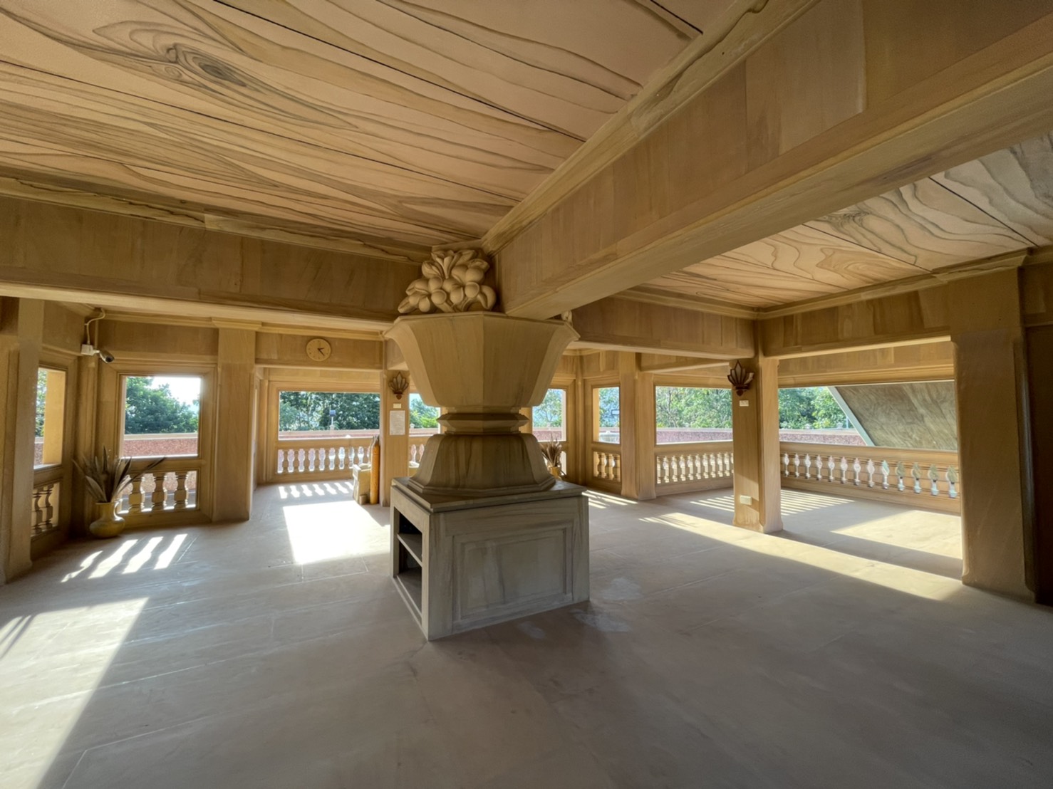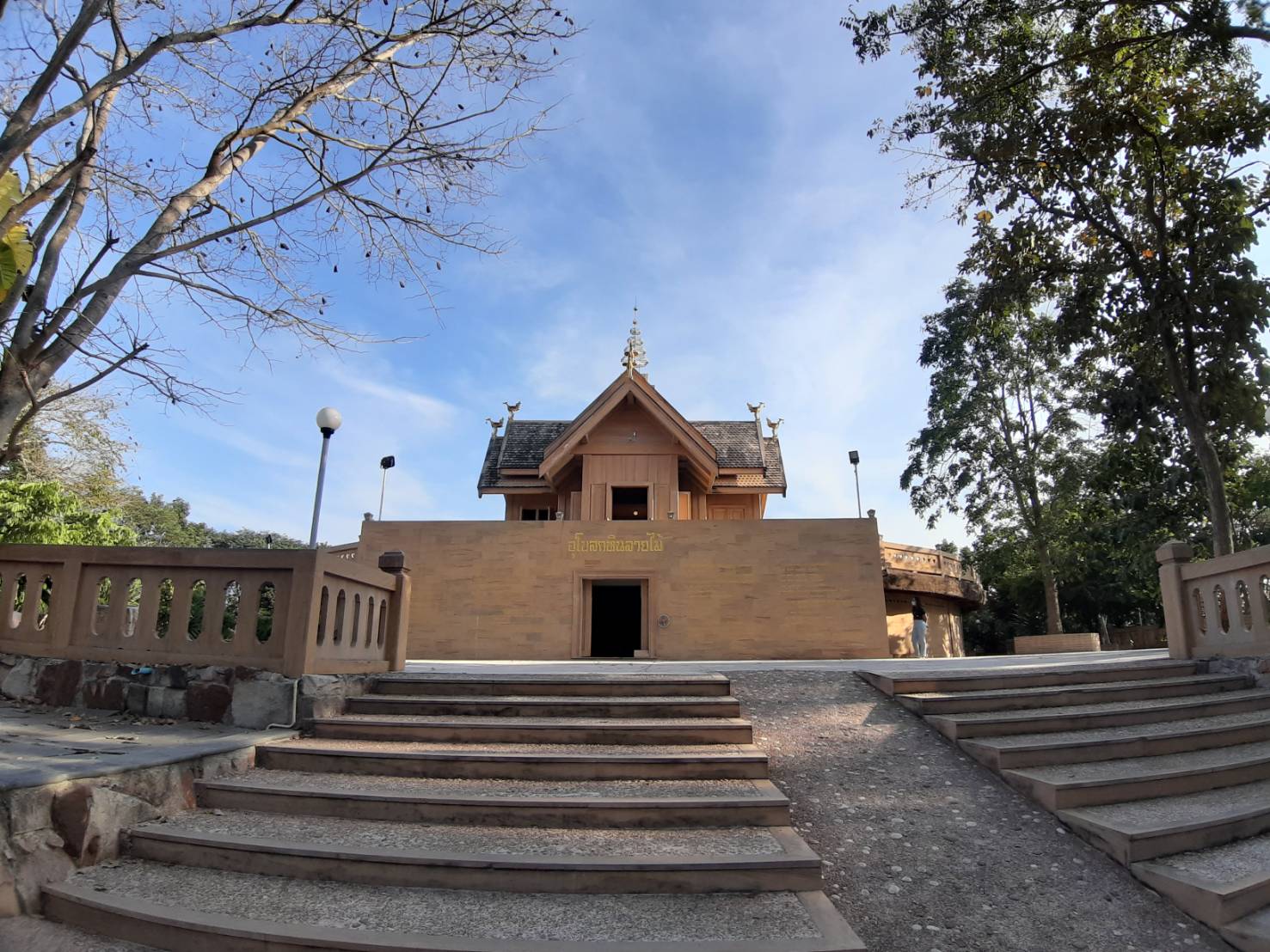แนวคิดในการก่อสร้างมุ่งเน้นความสวยงาม คงทน และกลมกลืนกับธรรมชาติ จึงได้ใช้หินทรายแปรรูปที่มีเส้นลายของชั้นตะกอนคล้ายลายไม้เนื้อแข็งสีน้ำตาลอ่อนให้ความสวยงามตามธรรมชาติ และมีอายุยืนยาวได้นับร้อยปี ส่วนรูปทรงของอาคารเป็นทรงสี่เหลี่ยมคล้ายบ้านไม้ในสมัยโบราณเป็นแป้นเกล็ดศิลปแบบอีสาน มีรูปตะวันและแสงรัศมีที่หน้าจั่วด้านทิศตะวันออกและทิศตะวันตก ก่อสร้างแล้วเสร็จในปี พ.ศ.2559