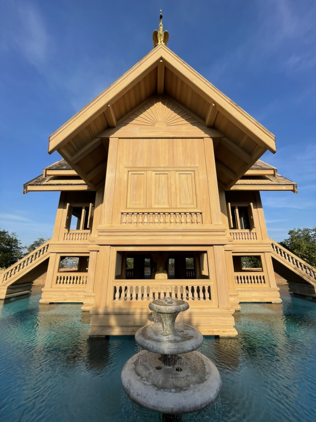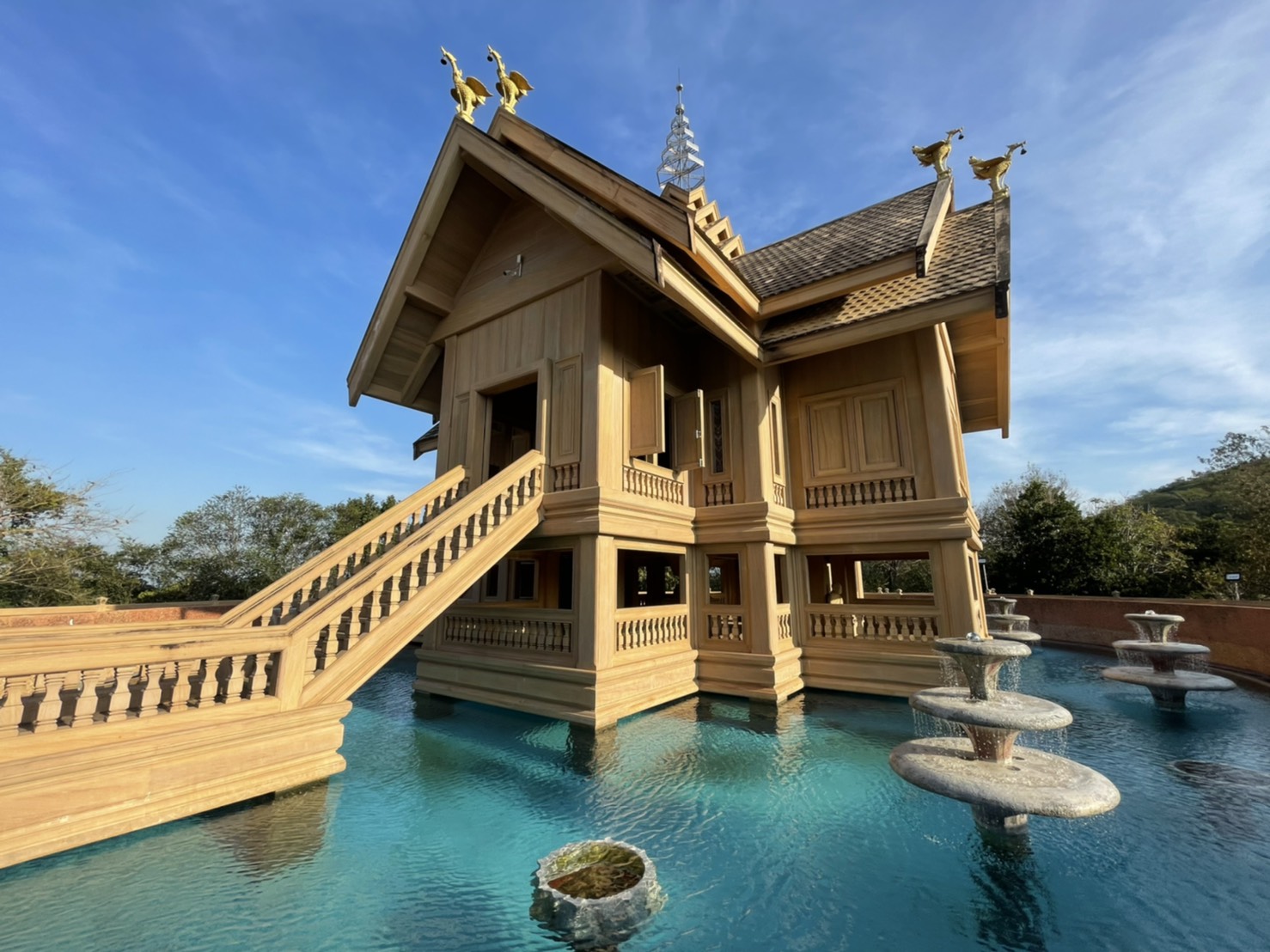ทั้งนี้ เพื่อทำให้อุโบสถหินลายไม้อำนวยประโยชน์ได้สูงสุด เจ้าอาวาสได้ออกแบบให้สร้างอาคารเป็น 3 ชั้น คือ ชั้นที่ 1 สร้างเป็นสระเก็บกักน้ำโดยสูบจากบ่อบาดาลเชิงเขาขึ้นมาพักไว้เพื่อการใช้สอย ชั้นที่ 2 สร้างเป็นพื้นที่นั่งสมาธิ และชั้นที่ 3 เป็นพื้นที่สำหรับการทำสังฆกรรม