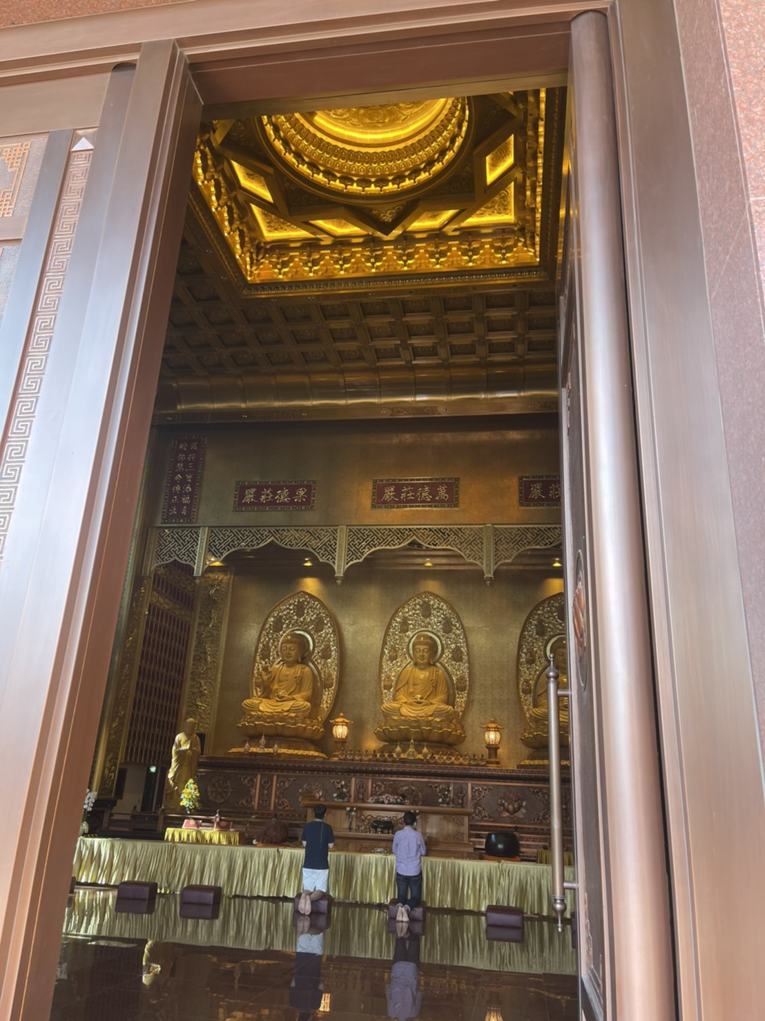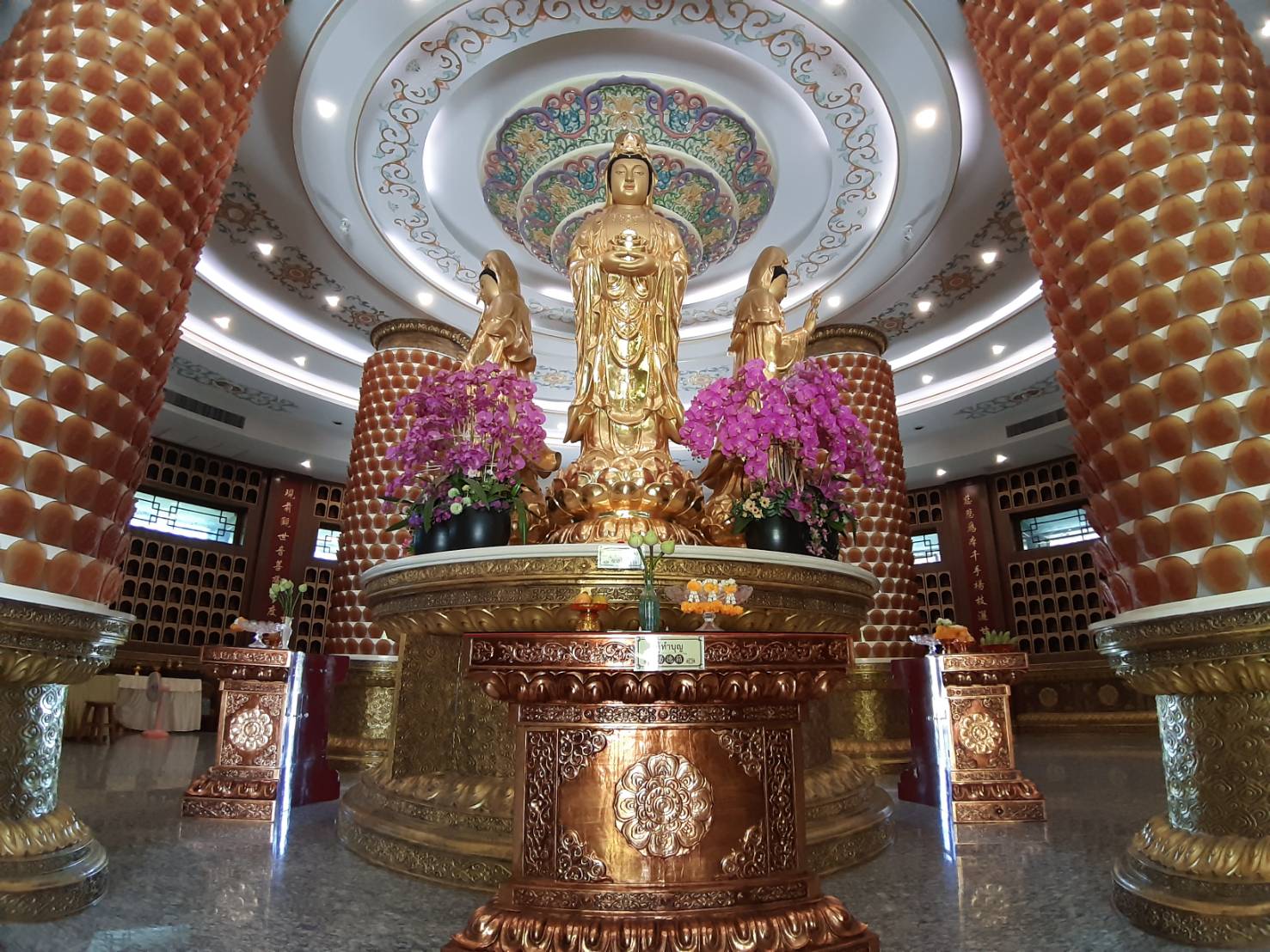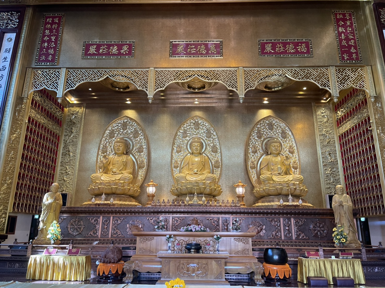 ตัวอาคารและการตกแต่งเป็นสถาปัตยกรรมเป็นแบบวัดไต้หวันทางเดินหินอ่อนสามารถเดินเชื่อมกันได้รอบวัด สำหรับวิหารกลาง ประดิษฐานรูปหล่อพระพุทธเจ้า ซึ่งเป็นองค์พระประธานทั้งสามองค์ สีทองอร่ามตา (เปิดให้เข้าวันอังคาร-อาทิตย์ เวลา 09.00-17.00 น. และปิดวันจันทร์)
