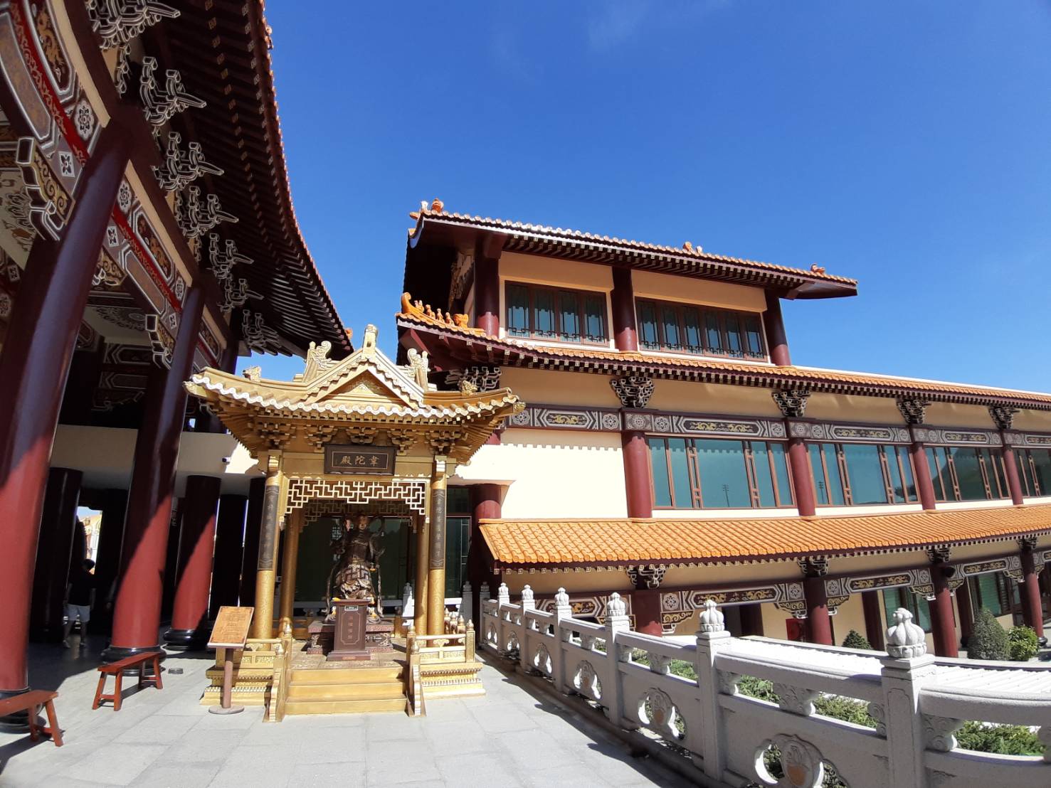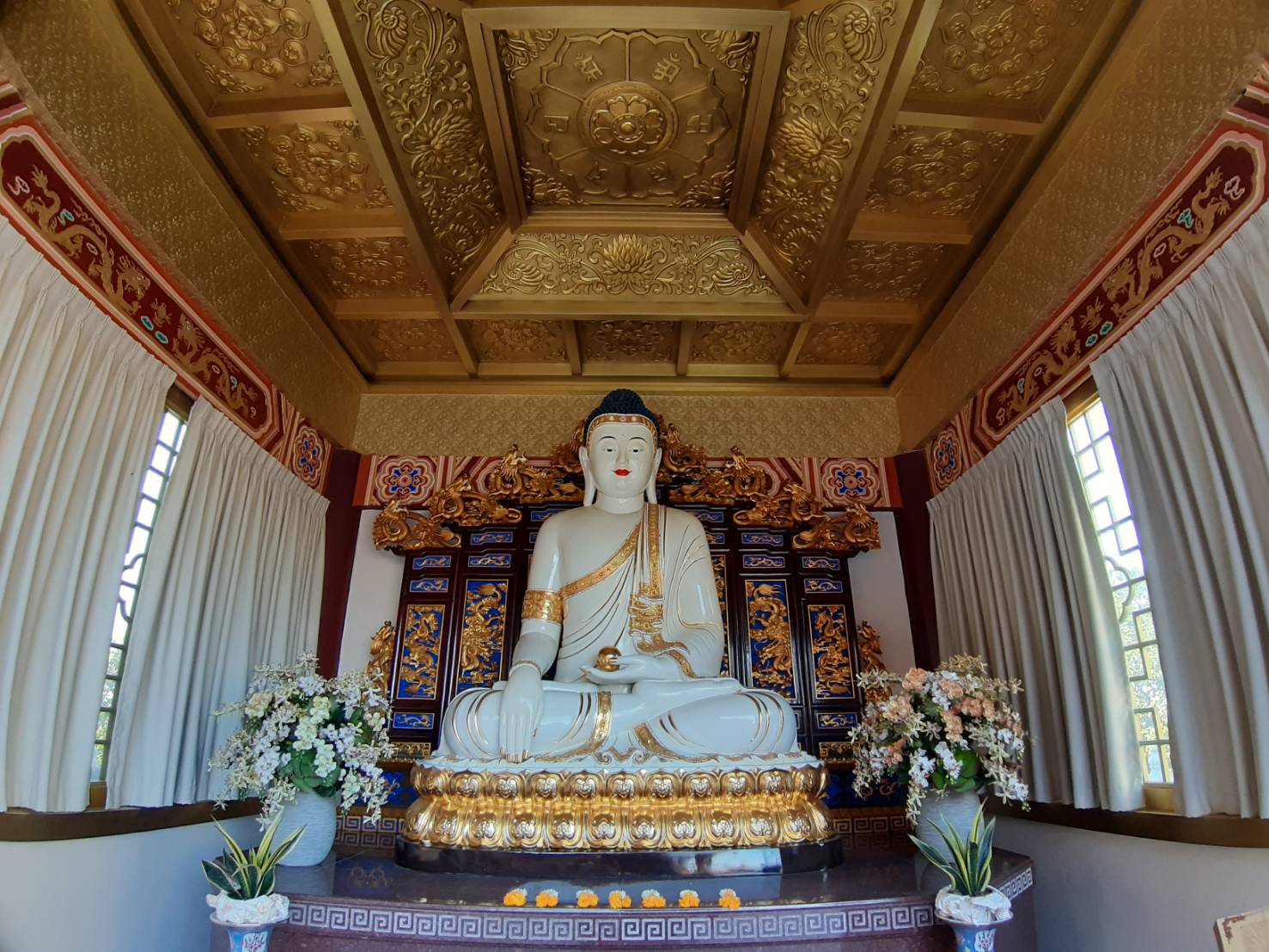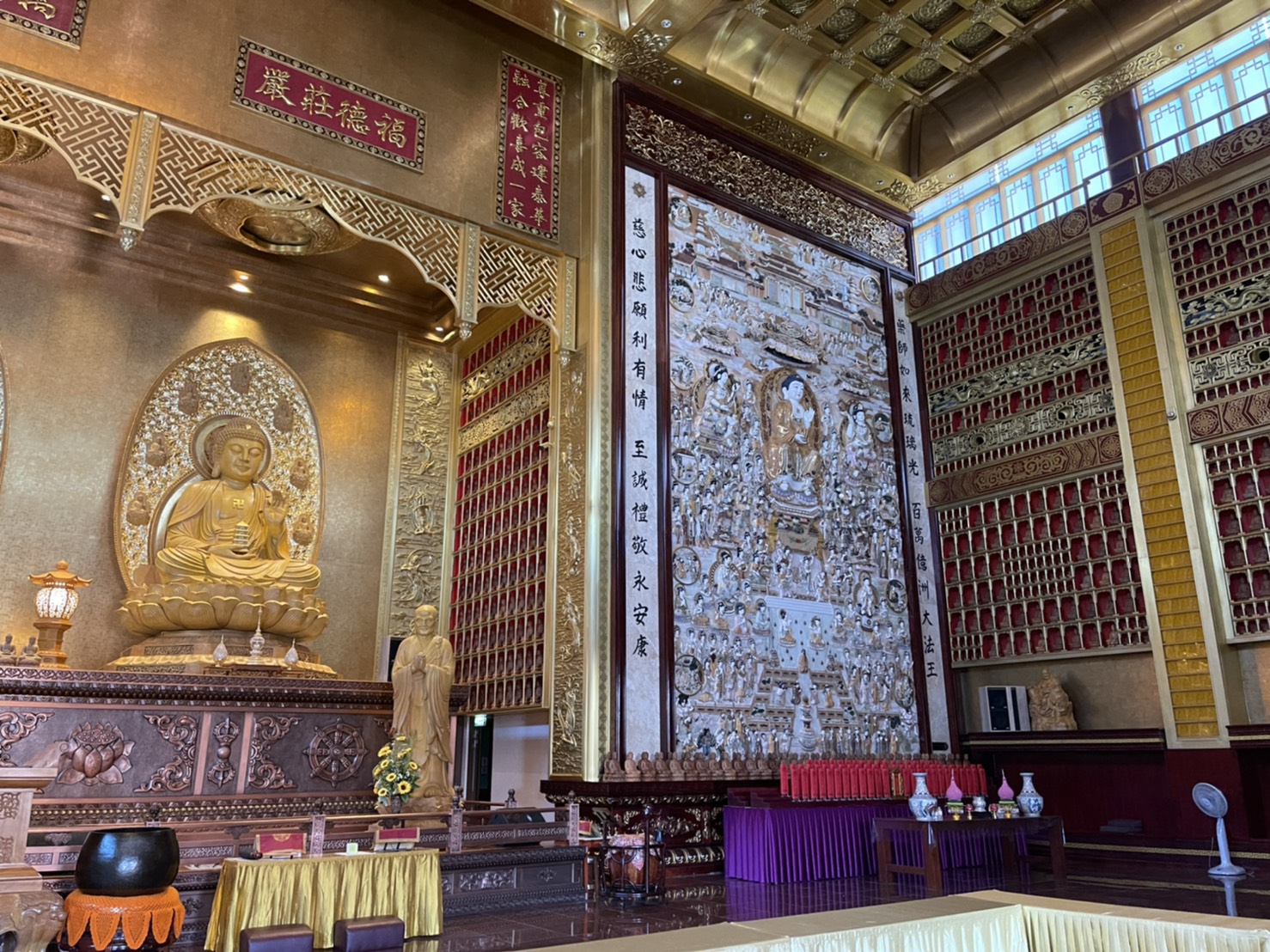 ตัวอาคารและการตกแต่งเป็นสถาปัตยกรรมเป็นแบบวัดไต้หวันทางเดินหินอ่อนสามารถเดินเชื่อมกันได้รอบวัด สำหรับวิหารกลาง ประดิษฐานรูปหล่อพระพุทธเจ้า ซึ่งเป็นองค์พระประธานทั้งสามองค์ สีทองอร่ามตา (เปิดให้เข้าวันอังคาร-อาทิตย์ เวลา 09.00-17.00 น. และปิดวันจันทร์)