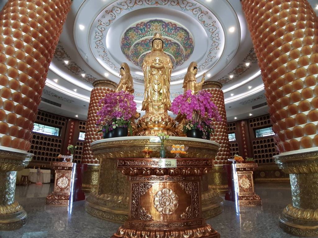 วิหารพระอวโลกิเตศวรโพธิสัตว์ มี เจ้าแม่กวนอิมองค์ใหญ่ สีทองเด่นเป็นสง่างาม รอบอาคารตกแต่งสวนแบบจีน รวมถึงมีรูปปั้นเทพจีน ภายในอาคารมีรูปปั้นเจ้าแม่กวนอิมประดิษฐานอยู่ตรงกลางวิหาร ทั้ง 4 ปาง ได้แก่ ปรางค์ประธานบุตร ปางประทานพร ปางประทานทรัพย์ และปางประธานโชคลาภ (เปิดให้เข้าวันอังคาร-อาทิตย์ เวลา 09.00-17.00 น. และปิดวันจันทร์)