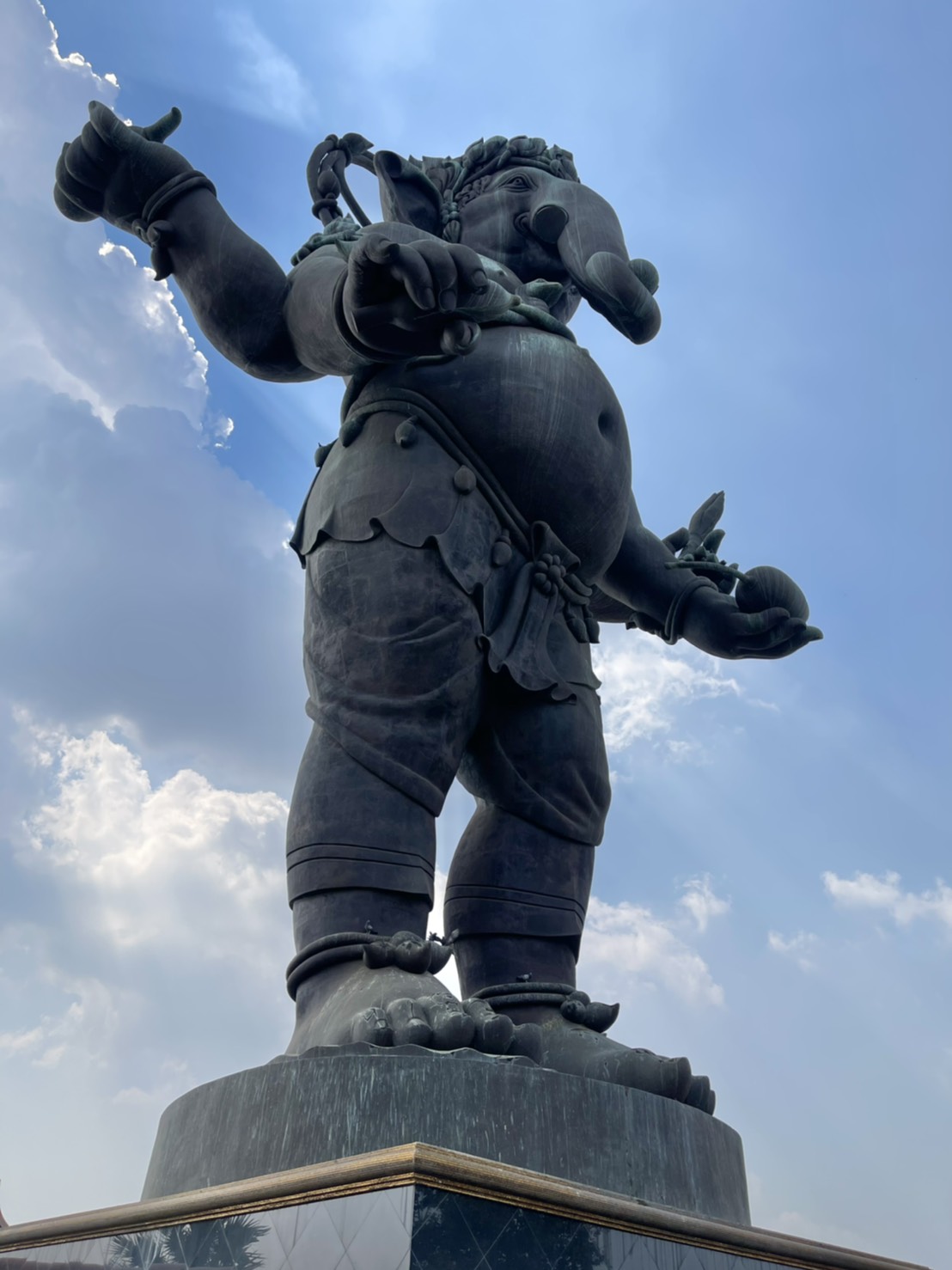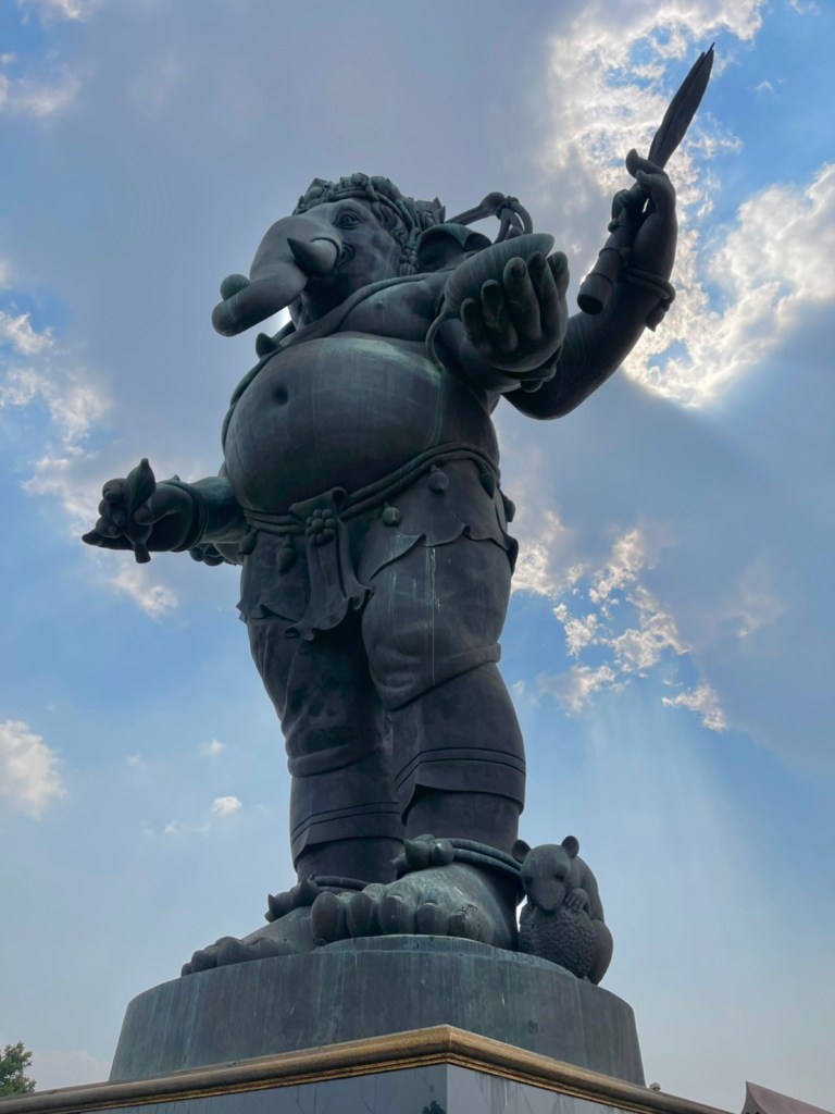 เป็นองค์พระพิฆเนศที่ใหญ่ที่สุดในโลก มีขนาดสูงถึง 39 เมตร เนื้อองค์ทำจากสำริด (ประกอบด้วย ซิลิคอน, แมงกานีส, นิเกิล, เหล็ก, ดีบุก, ตะกั่ว, สังกะสี, ทองแดง) พระหัตถ์ทั้ง 4 ถือ กล้วย ยอดอ้อย ขนุน และมะม่วง ที่พระบาทมีหนูกอดลูกมะพร้าว ซึ่งมีความหมาย คือ ความอุดมสมบูรณ์ของแผ่นดิน วัตถุประสงค์ในการสร้าง เพื่อส่งเสริมการท่องเที่ยวของจังหวัดฉะเชิงเทรา และของประเทศไทย