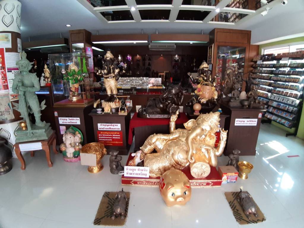 “พระพิฆเนศ ปางนอนเสวยสุข” มีความหมายว่า เป็นปางที่ประทานความมีกินมีใช้ เงินทองไม่ขาดมือ อยู่อย่างสุขสบาย อิ่มหนำสำราญ ขจัดปัญหา ไม่มีเรื่องให้วุ่นวายใจ เนื้อองค์มีสีชมพู ด้วยความศักดิ์สิทธิ์ เมื่อมีผู้ใดมาขอพรก็มักจะสำเร็จสมดังใจหวัง ทำให้เป็นที่นับถือของคนทั่วไป