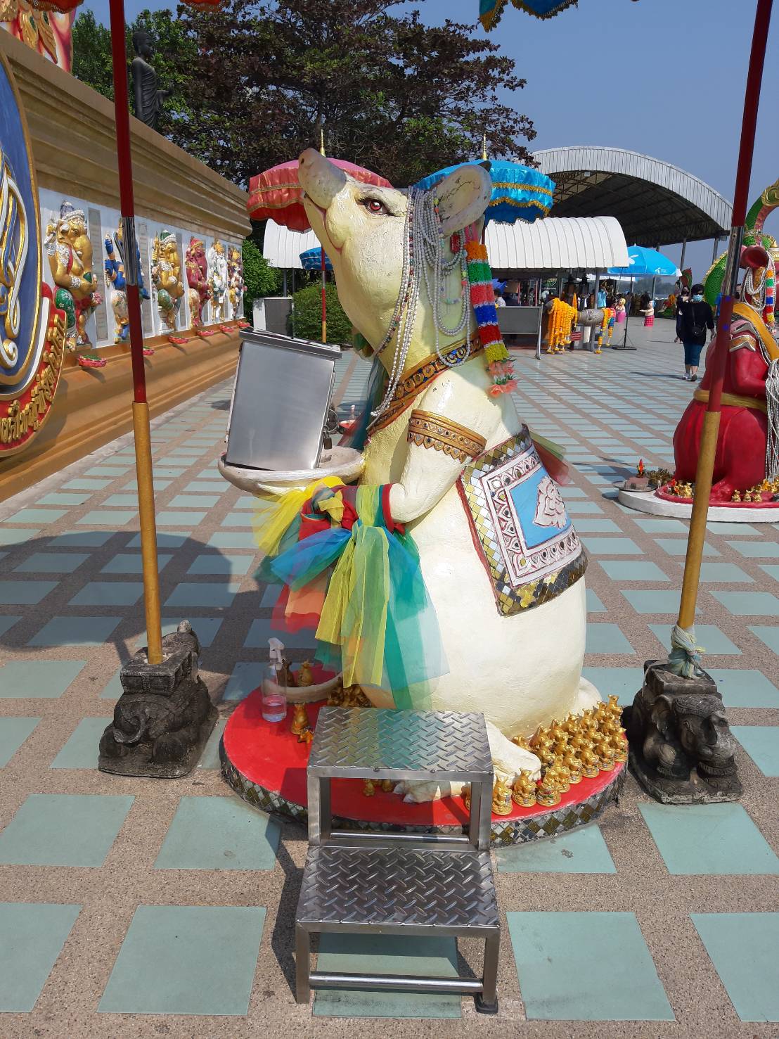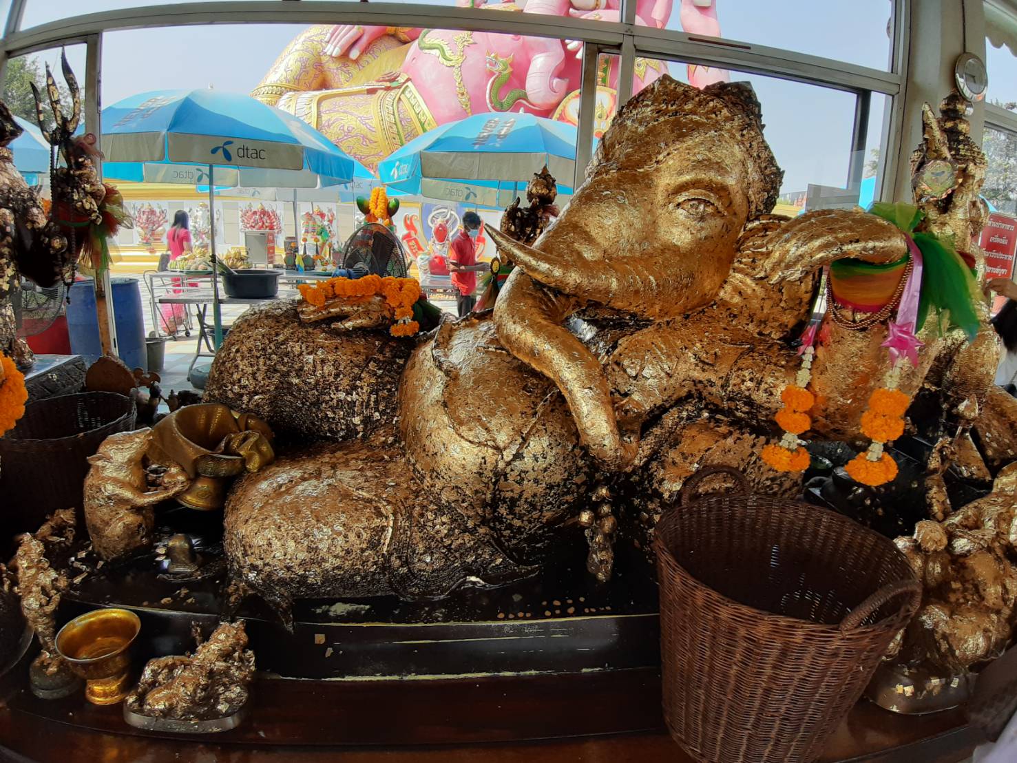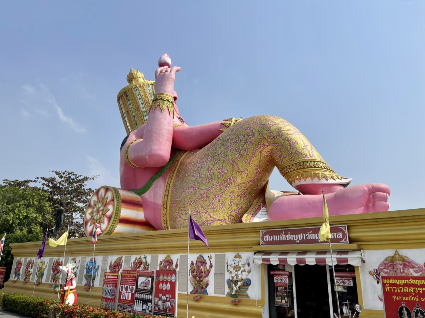 องค์พระพิฆเนศ มีความสูง 16 เมตร ยาว 24 เมตร มีสีชมพูสวยงาม ลักษณะกึ่งนั่ง กึ่งนอนตะแคง พระหัตถ์ขวาถือดอกบัว พระหัตถ์ซ้ายถืองาที่หัก หากใครได้เดินทางมากราบไหว้จะนำความสุขสบายมาสู่ชีวิต รอบฐานมีปางต่าง ๆ ถึง 32 ปางให้ชม ภายใต้ฐานพระพิฆเนศเป็นพิพิธภัณฑ์แสดงเกี่ยวกับพระพิฆเนศปางต่างๆ และประวัติวัด