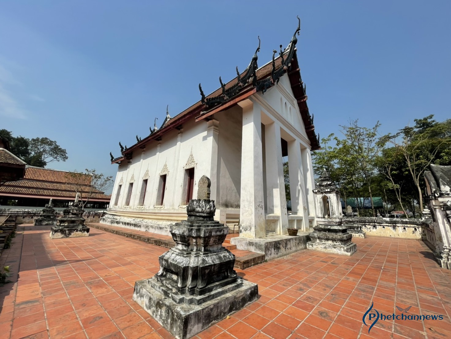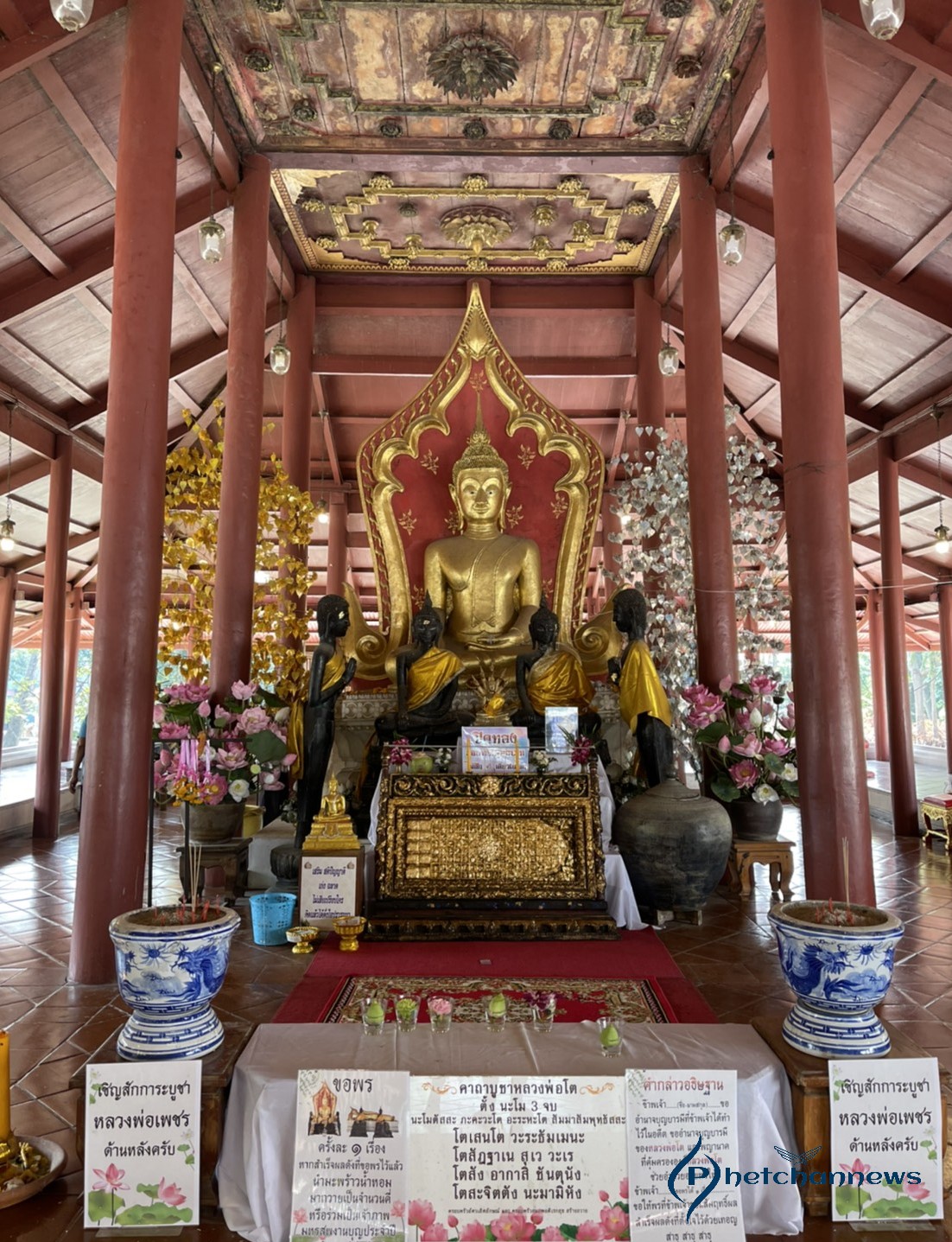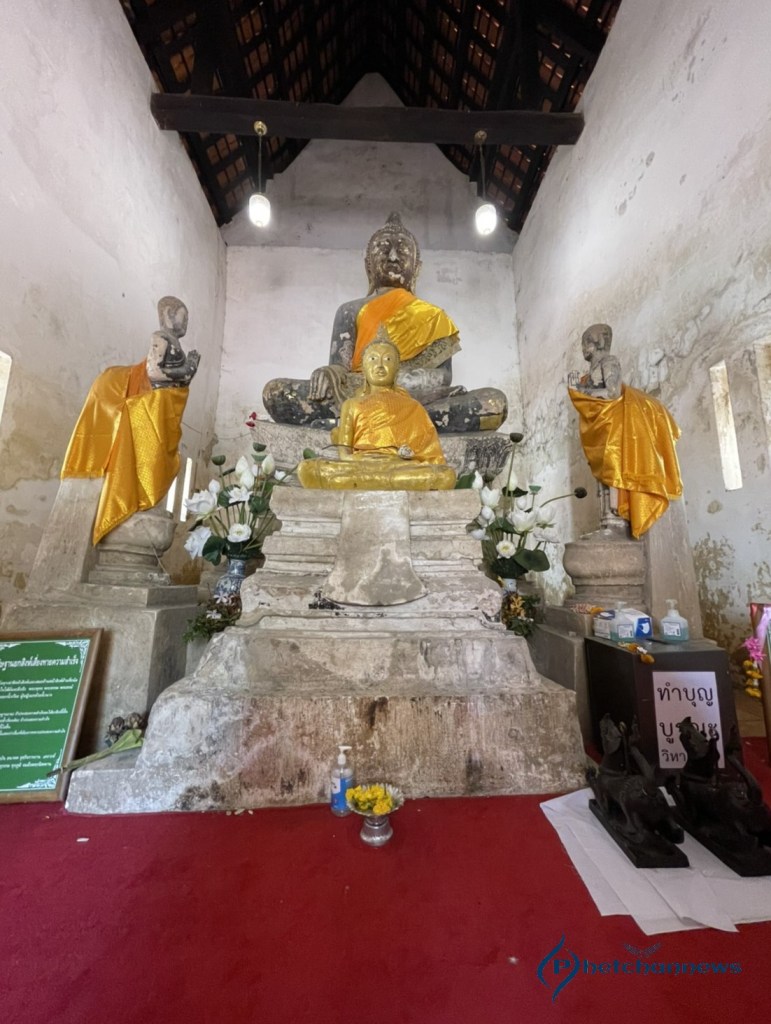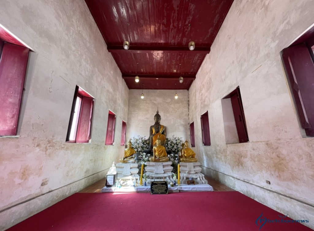 “หลวงพ่อโต” พระพุทธรูปก่อด้วยอิฐถือปูนลงรักปิดทองปางมารวิชัยประจำทิศเหนือ มีพุทธลักษณะที่งดงาม มีขนาดหน้าตักกว้าง 3 ศอก สูง 5 ศอก ไรพระศกเล็กแบบหนามขนุน ด้านหลังองค์พระมีพนักพิงเป็นซุ้มเรือนแก้ว ก่อด้วยอิฐมีลวดลายปูนปั้นเป็นคิ้ว ขอบเป็นเขี้ยวตะขาบจรดปลายแหลม ด้านล่างทั้งสองข้างทำเป็นลายกนก ฐานชุกชีก่อด้วยอิฐฉาบปูนเป็นชั้นย่อมุมสิบสองลดหลั่นกันลงมา ประดับด้วยลายปั้นลายหน้ากระดานประจำยามก้ามปูปิดทองร่องกระจกสีเขียว มีพระอันดับลดหลั่นลงมา พร้อมด้วยด้านข้างมีพระอัครสาวกยืนพนมมือซ้ายขวา ประดิษฐานอยู่ในศาลาดิน
