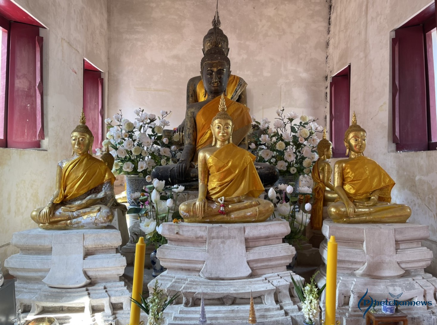 “หลวงพ่อพุทธรัตนมุนี” พระประธานประจำทิศตะวันออก ประดิษฐานภายในพระอุโบสถ พระประธานปูนปั้นปางมารวิชัย พระพักตร์รูปไข่ พระขนงโก่งโค้ง พระนาสิกโด่ง พระโอษฐ์ยิ้ม พระกรรณยาว พระเกศาเป็นเม็ดละเอียด พระรัศมีเป็นเกศเปลว พระวรกายบอบบางสวยงามตามรูปแบบศิลปสมัยอยุธยา หน้าตักกว้าง 5 ศอก สูง 6 ศอก พร้อมด้วยพระอู่ทองรายล้อม ฐานชุกชีส่วนบนทำเป็นบัวกลุ่มกลีบใหญ่รองรับเป็นฐานปัทม์ย่อมุมขยายจนจดแท่น