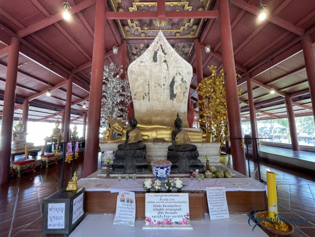 นอกจากนี้ยังมี “หลวงพ่อเพชร” พระพุทธรูปปางไสยาสน์ ประจำทิศใต้ ประดิษฐานอยู่ด้านหลังหลวงพ่อโตในศาลาดิน ซึ่งมีซุ้มเรือนแก้วคั่น องค์พระมีขนาดยาว 5 ศอก 1 คืบ 5 นิ้ว อยู่บนฐานชุกชี ด้านหน้าองค์หลวงพ่อเพชรมีพระพุทธรูปปางมารวิชัย ประดิษฐานบนฐานชุกชีสององค์ ส่วนฉากด้านหลังซุ้มเรือนแก้วปรากฎภาพจิตรกรรมฝาผนังศิลปสมัยอยุธยา วาดเป็นภาพพระพุทธเจ้าเสด็จจากดาวดึงส์ แต่รายละเอียดของภาพถูกน้ำฝนชะล้างไปจนเลือนราง ซึ่งเป็นภาพจิตรกรรมที่เก่าที่สุดในจังหวัดปทุมธานีที่ยังคงหลงเหลืออยู่ปัจจุบัน