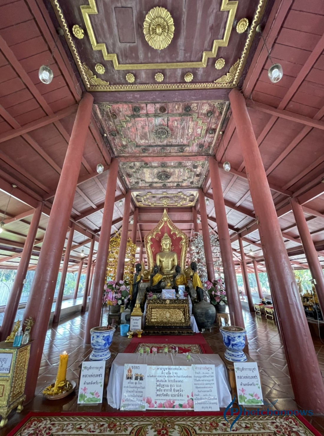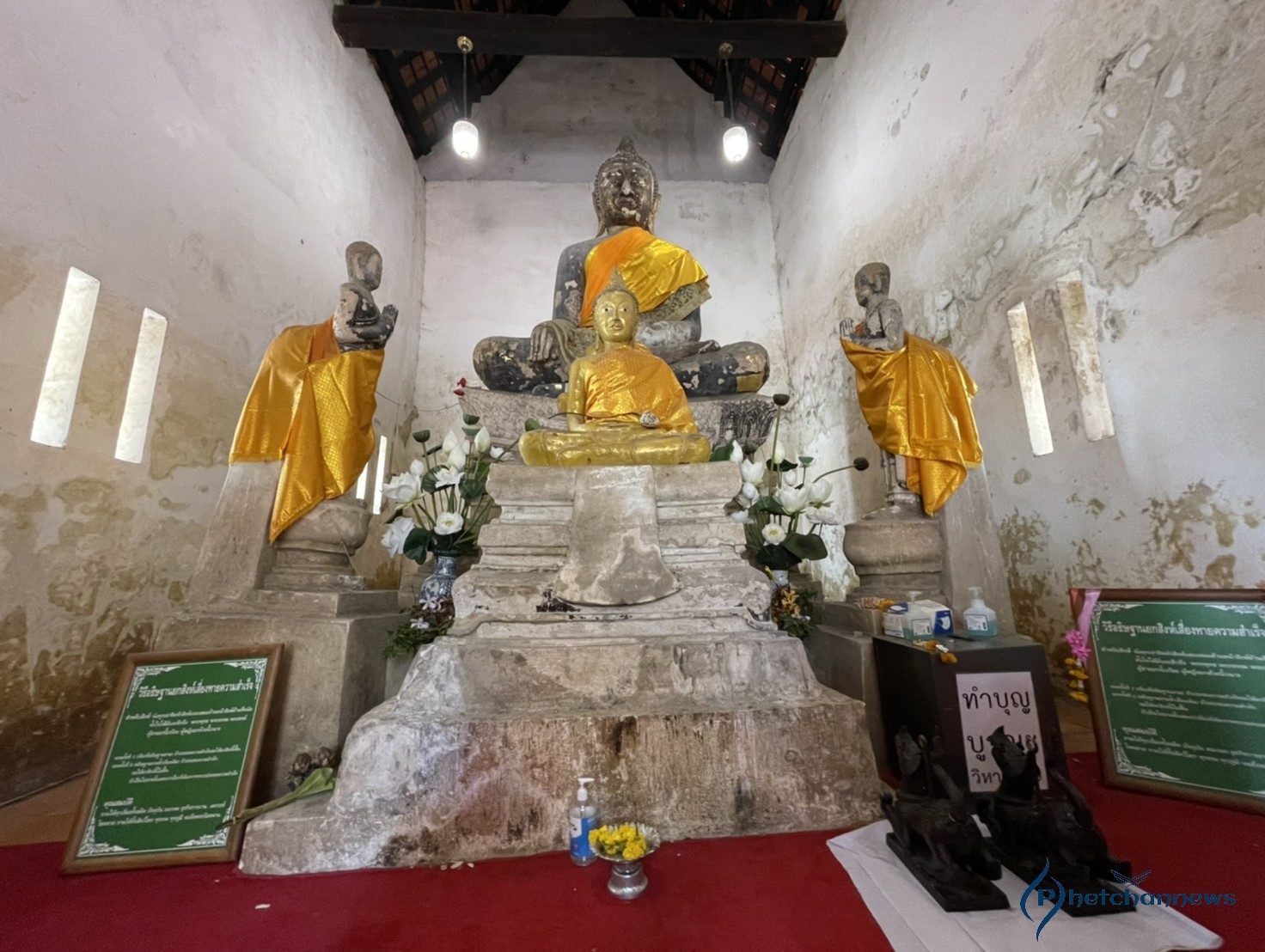 ภายในเป็นที่ประดิษฐานของ “หลวงพ่อโต” พระพุทธรูปก่อด้วยอิฐถือปูนลงรักปิดทองปางมารวิชัยประจำทิศเหนือ มีพุทธลักษณะที่งดงาม มีขนาดหน้าตักกว้าง 3 ศอก สูง 5 ศอก ไรพระศกเล็กแบบหนามขนุน ด้านหลังองค์พระมีพนักพิงเป็นซุ้มเรือนแก้ว ก่อด้วยอิฐมีลวดลายปูนปั้นเป็นคิ้ว ขอบเป็นเขี้ยวตะขาบจรดปลายแหลม ด้านล่างทั้งสองข้างทำเป็นลายกนก ฐานชุกชีก่อด้วยอิฐฉาบปูนเป็นชั้นย่อมุมสิบสองลดหลั่นกันลงมา ประดับด้วยลายปั้นลายหน้ากระดานประจำยามก้ามปูปิดทองร่องกระจกสีเขียว มีพระอันดับลดหลั่นลงมา พร้อมด้วยด้านข้างมีพระอัครสาวกยืนพนมมือซ้ายขวา