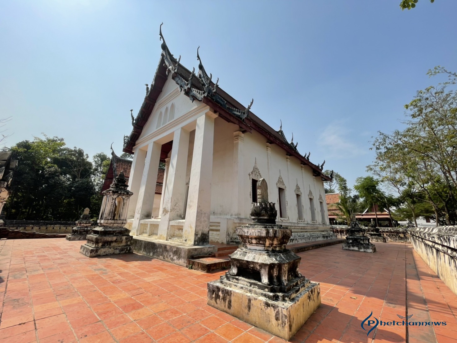 เป็นอาคารทรงไทยจั่วลูกฟักหน้าพรหม มีมาลัยโดยรอบ มุงด้วยกระเบื้องกาบู กระเบื้องเชิงชายทำเป็นบันแถลงรูปสามเหลี่ยม ปลายเรียวโค้งรูปเทพพนมสลับกับดอกบัว ภายในมีเสาระเบียบเรียบรายรอบเป็นจำนวนมาก พื้นปูด้วยกระเบื้องดินเผาขัดมัน