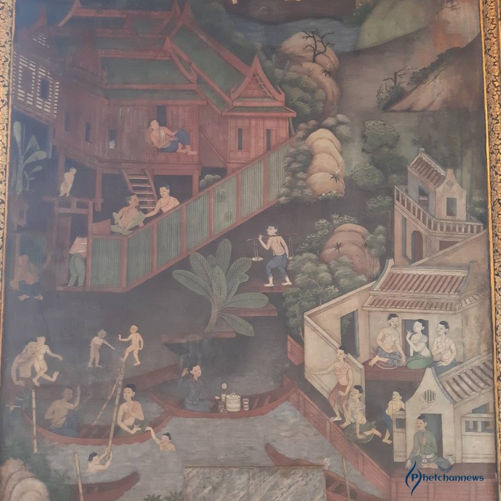 ประเภทที่สอง เป็นจิตรกรรมฝาผนังในเชิงคดีโลก เป็นการให้ความรู้สรรพวิชาต่างๆ ที่ไม่ใช่ห้วข้อธรรมะ ซึ่งในการปฏิสังขรณ์วัดพระเชตุพนวิมลมังครารามสมัยรัชกาลที่ 3 ทรงโปรดให้รวบรวมความรู้และวิทยาการในสาขาต่างๆ ทั้งวรรณคดี วรรณกรรม ขนบธรรมเนียมประเพณี ตำรายา สุขวิทยาต่างๆ ถ่ายทอดเป็นภาพจิตรกรรมฝาผนังเพื่อให้ผู้คนได้ศึกษาความรู้ในเชิงรูปธรรม อาทิ ภาพตำราการนวด ภาพรามเกียรติ์ ภาพสัตว์หิมพานต์ ภาพขนบประเพณีและคติคตินิยมในสังคมไทย ภาพพงศาวดารจีน ภาพการค้าเรือสำเภา รวมถึงภาพชนชาติ 12 ภาษา