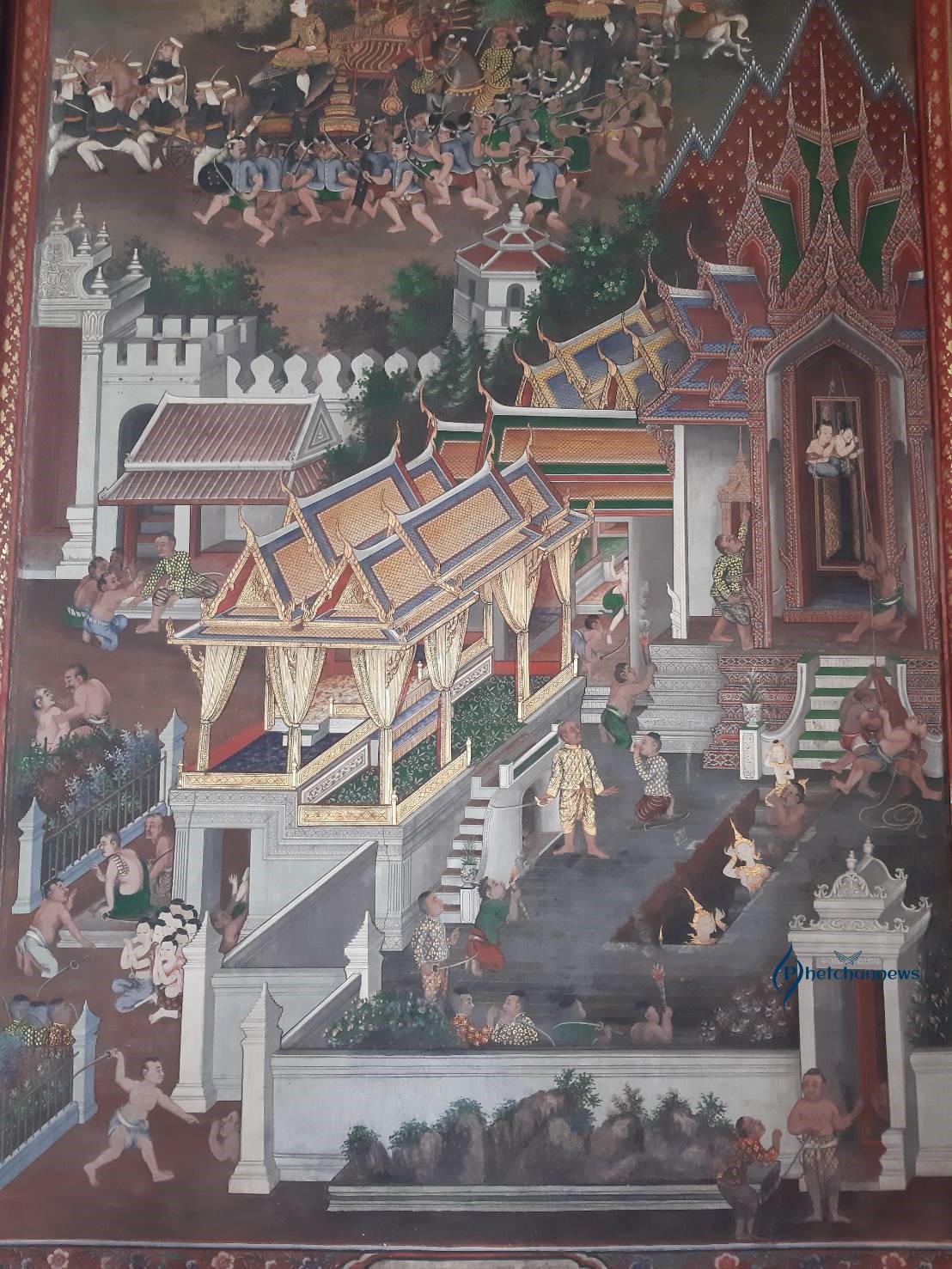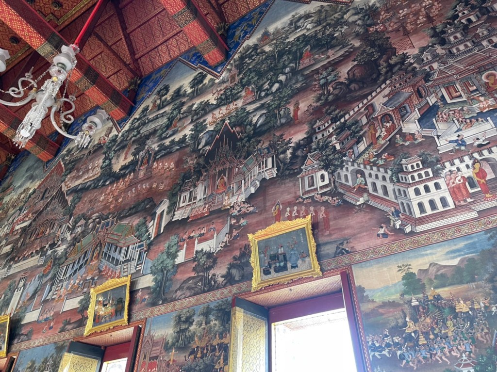 ภายในพระอุโบสถ “วัดอรุณราชวรารามราชวรมหาวิหาร” หรือ วัดแจ้ง มีภาพจิตรกรรมฝาผนังทั้ง 4 ด้าน เป็นภาพพระพุทธประวัติ เช่น ภาพผจญมาร และภาพในชาดก เช่น เวสสันดรชาดก เป็นต้น