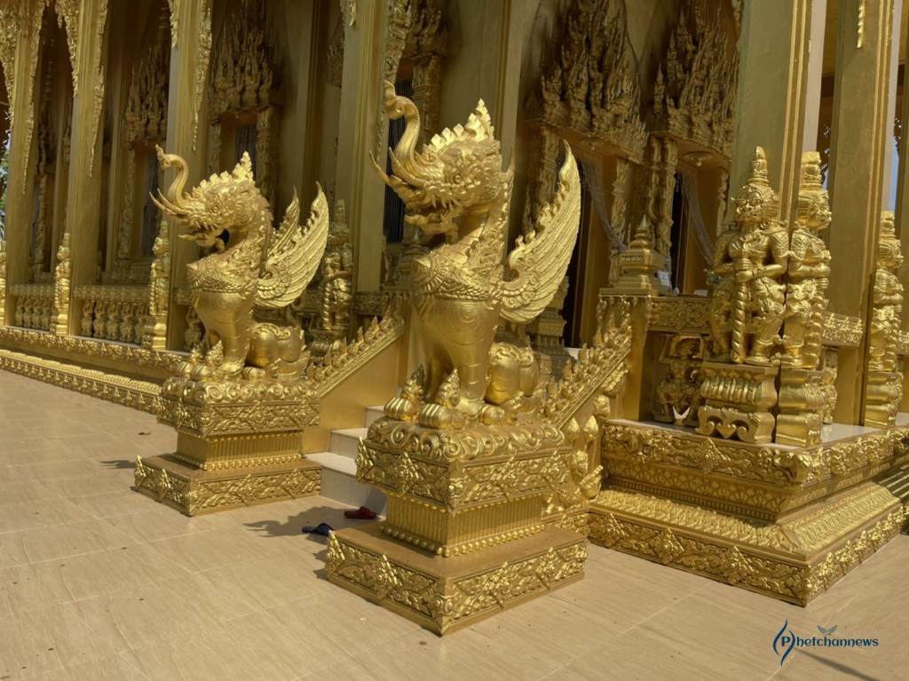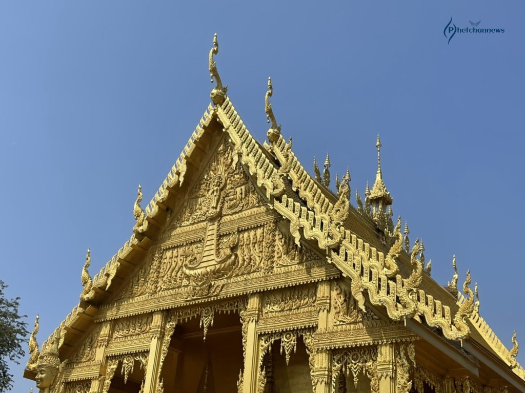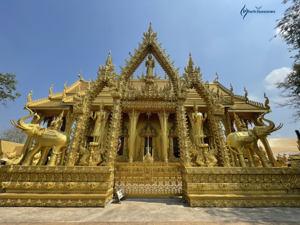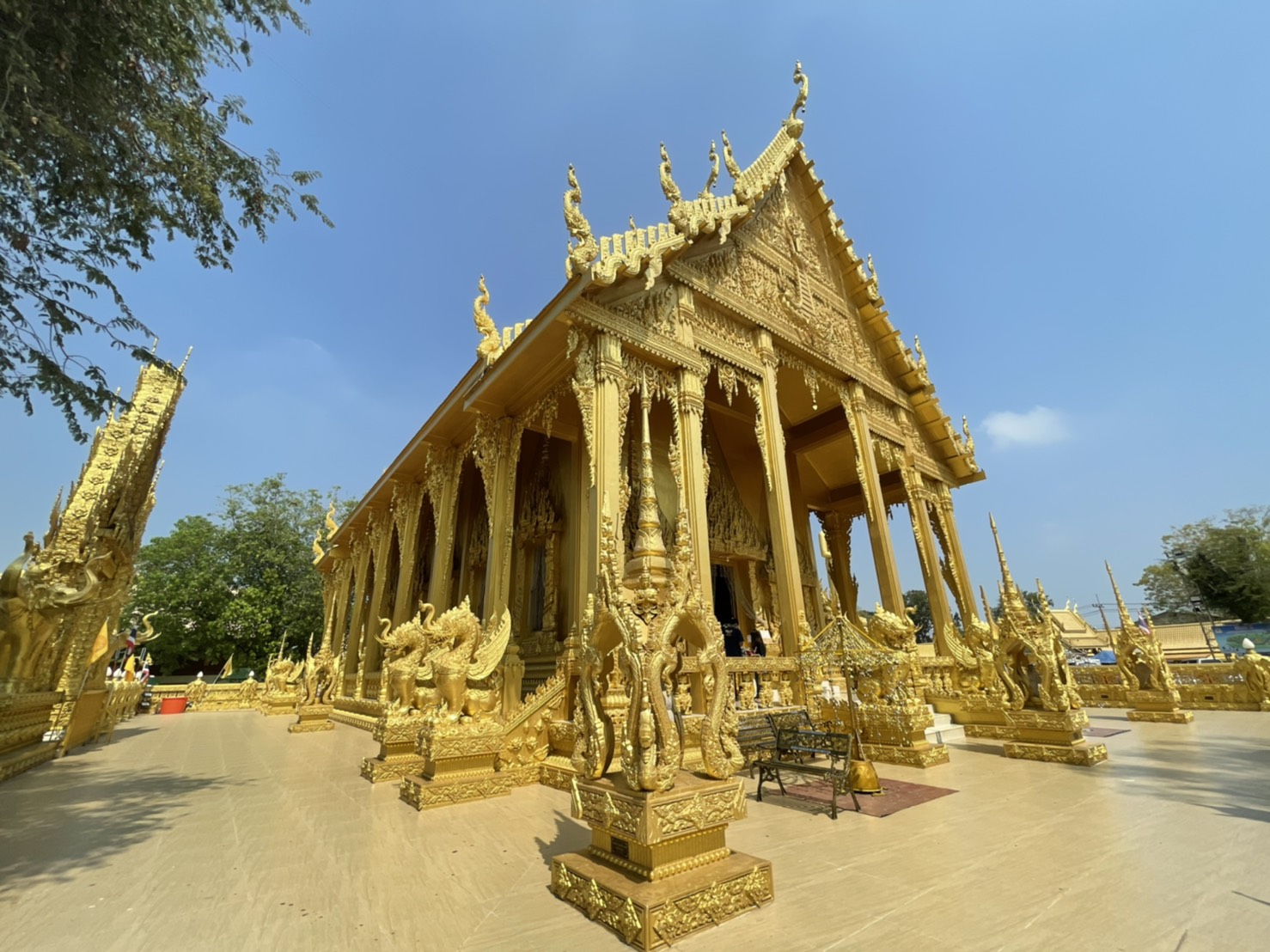 “พระอุโบสถสีทอง” เป็นอุโบสถสีทองหนึ่งเดียวในประเทศไทยที่ทาสีทองทั้งหลัง ตัวอุโบสถสร้างแบบก่ออิฐถือปูน หลังคาประดับด้วยพญานาคและธรรมจักรตรงกลางมีบุษบกยอดฉัตร ส่วนบริเวณกำแพงแก้วชั้นนอกตกแต่งด้วยลวดลายธรรมจักรสลับกับโคมไฟรูปช้างสามเศียรเป็นระยะ ๆ