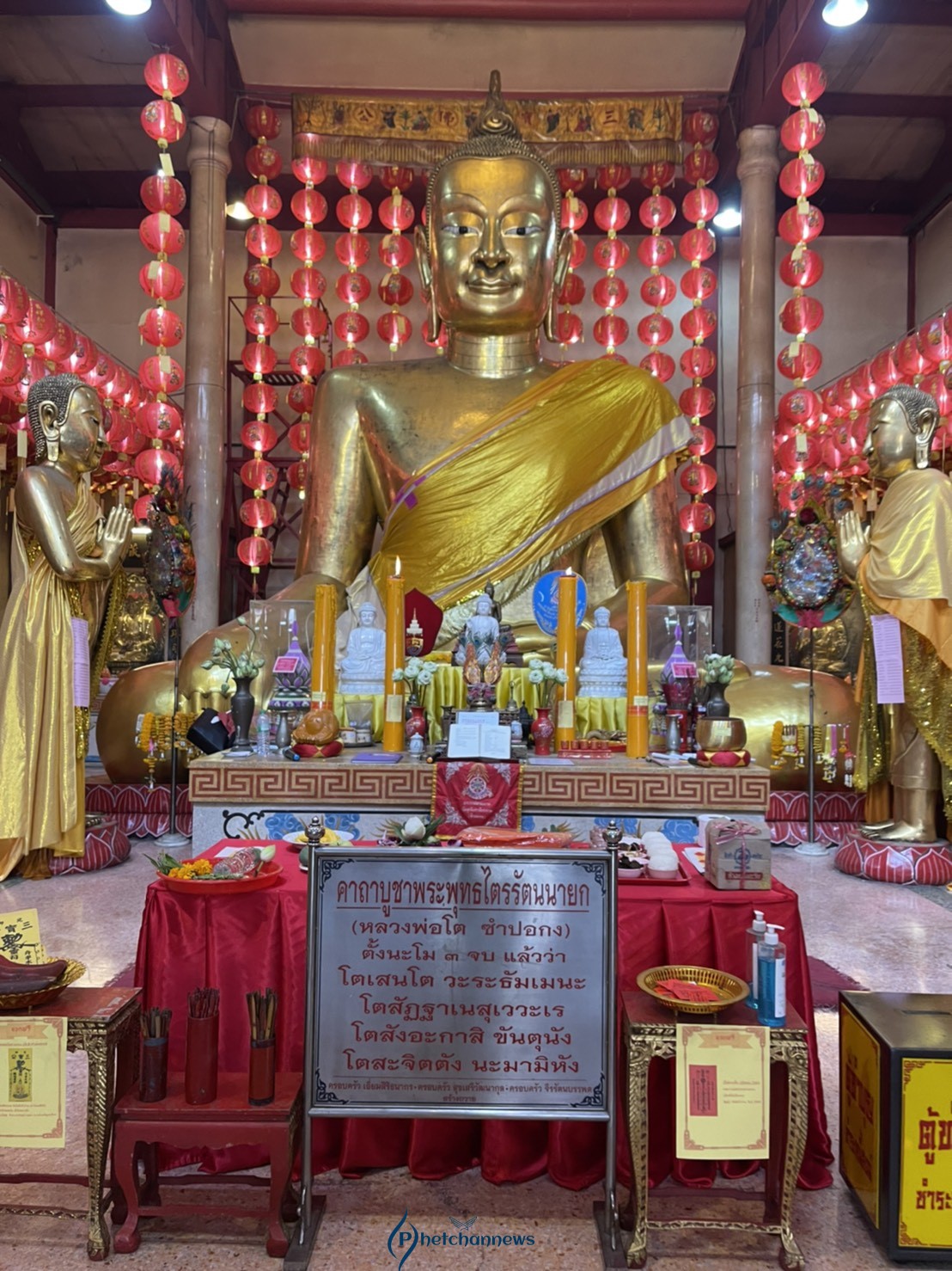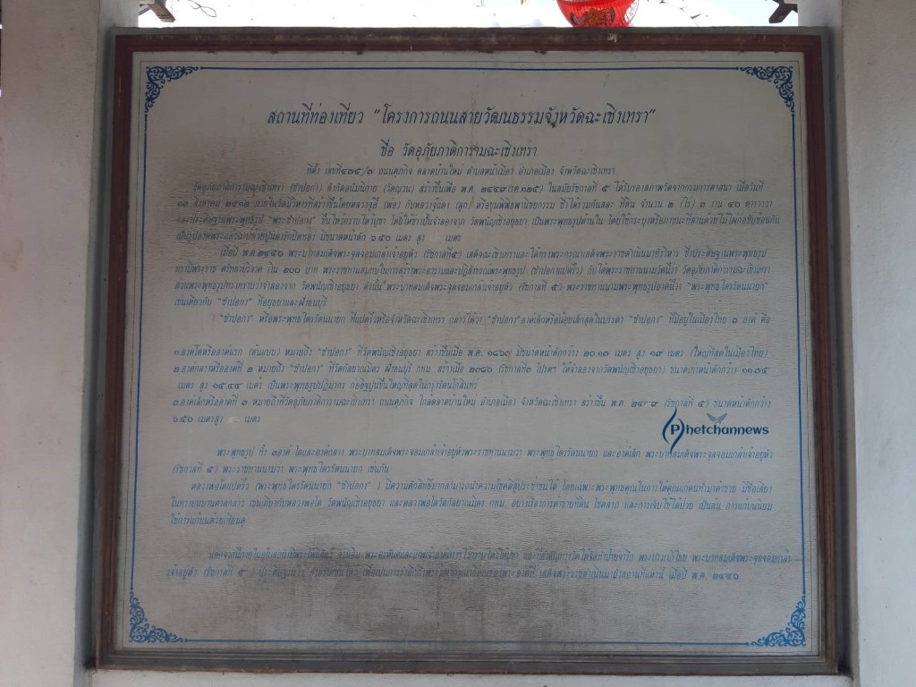 “พระพุทธไตรรัตนนายก” หรือ “ซำปอกง” แปดริ้วฉะเชิงเทรา มีขนาดเล็กที่สุด ในบรรดา “ซำปอกง” ที่มีอยู่ในเมืองไทย 3 องค์ คือ องค์แรก (ต้นแบบ) “ซำปอกง” ที่วัดพนัญเชิง อยุธยา สร้างปี พ.ศ.1897 มีขนาดหน้าตักกว้าง 20.17 เมตร สูง 19 เมตร ใหญ่ที่สุดในเมืองไทย , องค์ที่ 2 ซำปอกงที่วัดกัลยาณมิตร ฝั่งธนบุรี กรุงเทพฯ สร้างเมื่อปี พ.ศ. 2380 รัชกาลที่ 3 โปรดให้จำลองมาจากวัดพนัญเชิงอยุธยา ขนาดหน้าตักกว้าง 11.75 เมตร สูง 15.44 เมตร เป็นพระพุทธรูปปฏิมากร ก่ออิฐถือปูนใหญ่ที่สุดในกรุงรัตนโกสินทร์ และ “ซำปอกง” องค์ที่ 3 อยู่ที่ วัดอุภัยภาติการาม แปดริ้ว