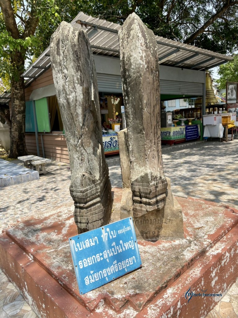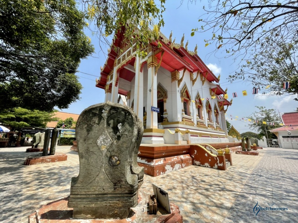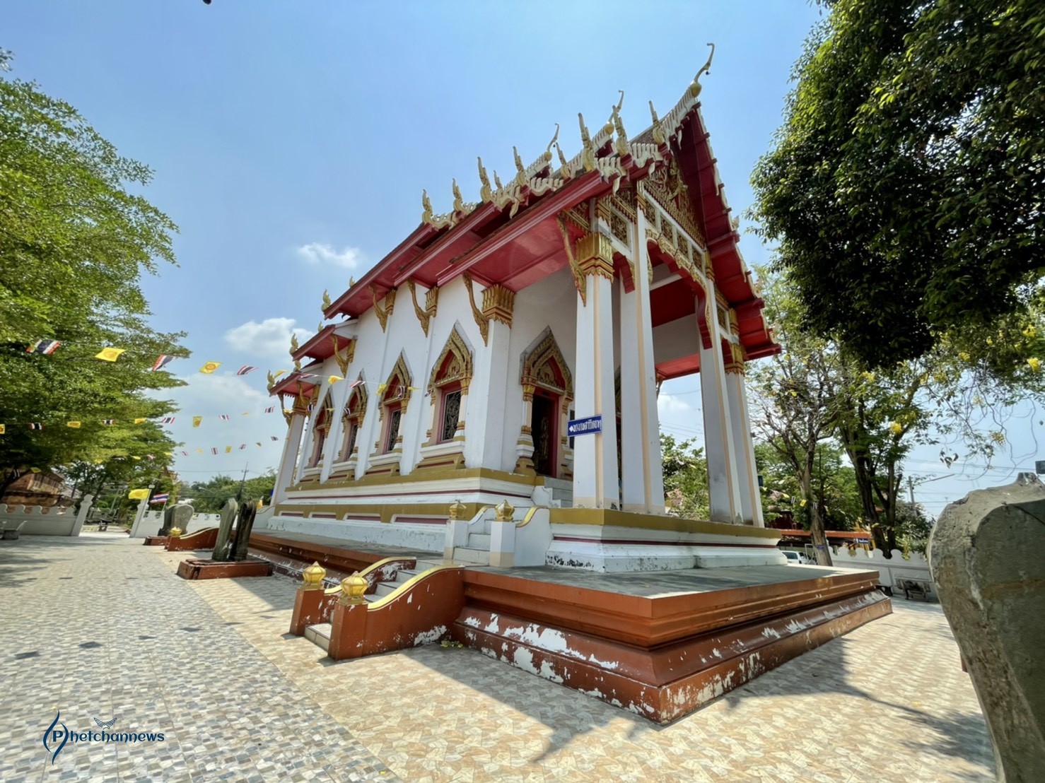 พระอุโบสถที่เห็นอยู่ในปัจจุบัน ได้สร้างขึ้นมาใหม่แต่ทับลงบนพื้นที่เดิม ใบเสมาโดยรอบเป็นใบเสมาเก่าด้วยหินชนวนเนื้อละเอียดสีเทา มีขนาดใหญ่ สลักลายแต่เพียงเส้นนูนเป็นสันตรงกลางตามแนวตั้ง โดยมีลายรูปสี่เหลี่ยมขนมเปียกปูนเกลี้ยงๆ คั่นอยู่ ลักษณะของใบเสมาดังกล่าวเชื่อกันว่าน่าจะมีอายุอยู่ในสมัยอยุธยาตอนต้น