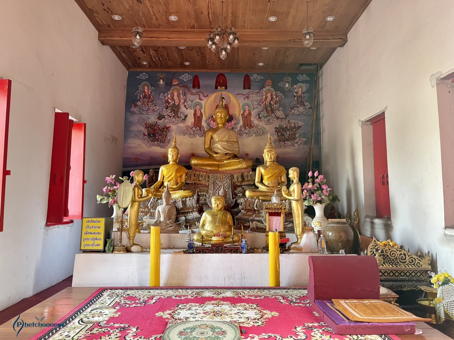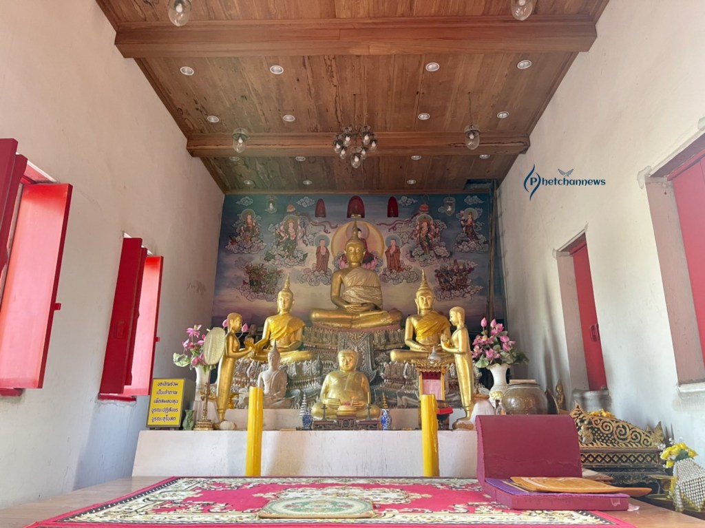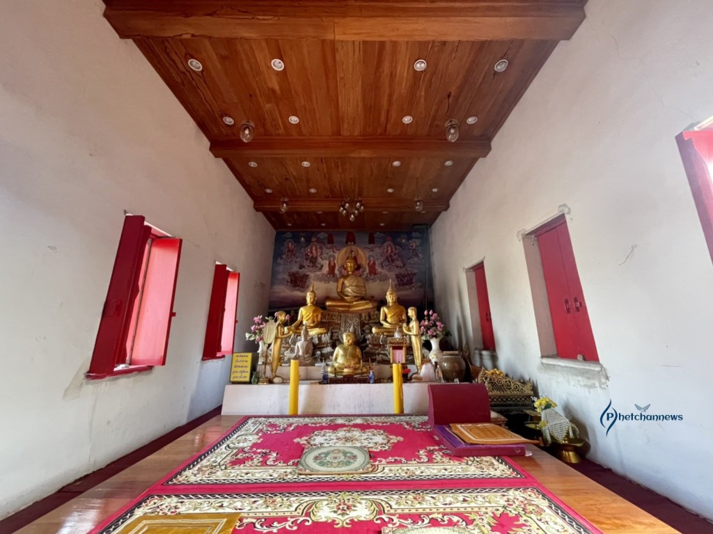 พระประธานประจำอุโบสถปางสมาธิ สร้างเมื่อ พ.ศ. 2323 พระปรางค์ 1 องค์ สันนิษฐานว่าสร้างสมัยรัตนโกสินทร์ เจดีย์ 1 องค์สร้างปลายสมัยกรุงธนบุรี บูรณะเมื่อ พ.ศ. 2484 โดยกรมชลประทาน