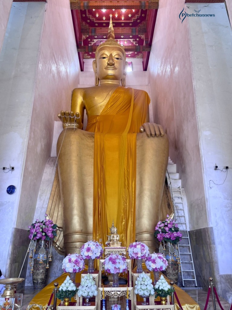 “หลวงพ่อโต” เป็นพระพุทธรูปปูนปั้นปิดทองปางป่าเลไลยก์ขนาดใหญ่สูง 23 เมตรเศษ สร้างตามแบบศิลปะอู่ทองรุ่นที่สอง ซึ่งเป็นศิลปะฝีมือสกุลช่างอู่ทองแท้ ๆ เดิมทีองค์พระประดิษฐานอยู่กลางแจ้ง พระหัตถ์ขวาหัก ช่างได้สร้างวิหารครอบ โดยให้ผนังวิหารชิดกับพระหัตถ์ขวา ส่วนทางพระหัตถ์ซ้ายให้มีที่ว่าง ด้านหลังองค์พระสร้างชิดกับผนังวิหารทำให้แข็งแรง นับเป็นความชาญฉลาดของช่างเป็นอย่างยิ่ง