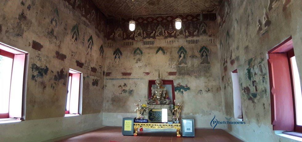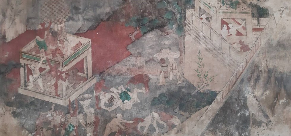 ภาพจิตรกรรมสีฝุ่นผสมกาวตามแบบอยุธยาตอนกลาง “วัดชมภูเวก”