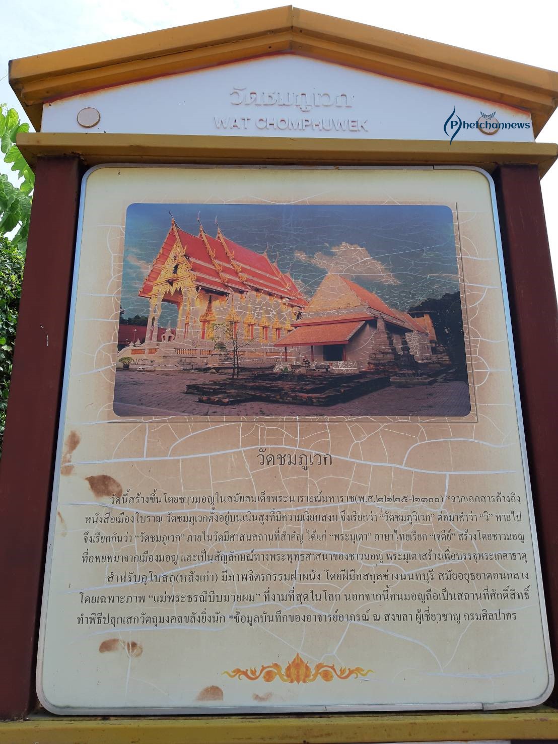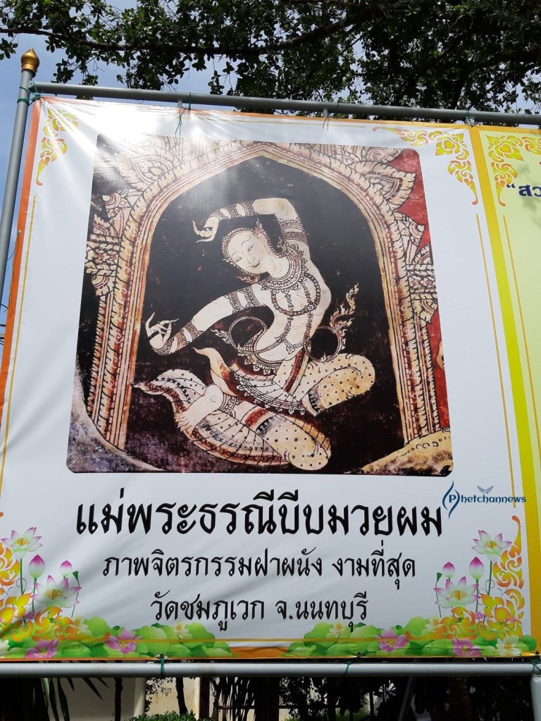 วัดชมภูเวก เป็นวัดมอญ สร้างในสมัยอธุยาตอนปลาย โดยชาวมอญเป็นผู้สร้าง กรมศิลปากรขึ้นทะเบียนไว้เป็นโบราณสถานเมื่อปี 2505 ในพระอุโบสถหลังเดิมทรงมหาอุด ผนังทั้งสี่ด้านของพระอุโบสถมีภาพจิตรกรรมสีฝุ่นผสมกาวตามแบบอยุธยาตอนกลาง ฝีมือช่างสกุลนนทบุรีในยุคนั้น แสดงเรื่องราวทศชาติชาดกและพุทธประวัติ โดยมีรูปพระแม่ธรณีบีบมวยผมในท่วงท่าที่อ่อนช้อยงดงามอยู่ในซุ้มเรือนแก้วยอดแหลม ได้รับการยกย่องว่าเป็นภาพแม่พระธรณีที่งดงามที่สุดภาพหนึ่งของเมืองไทย