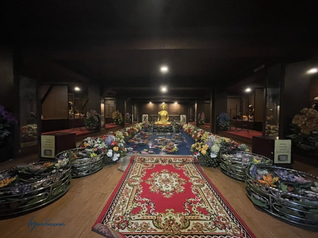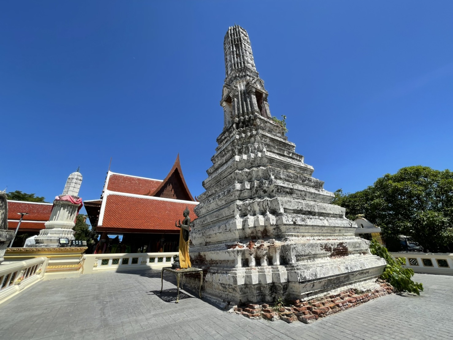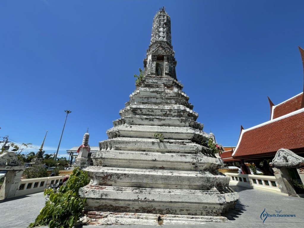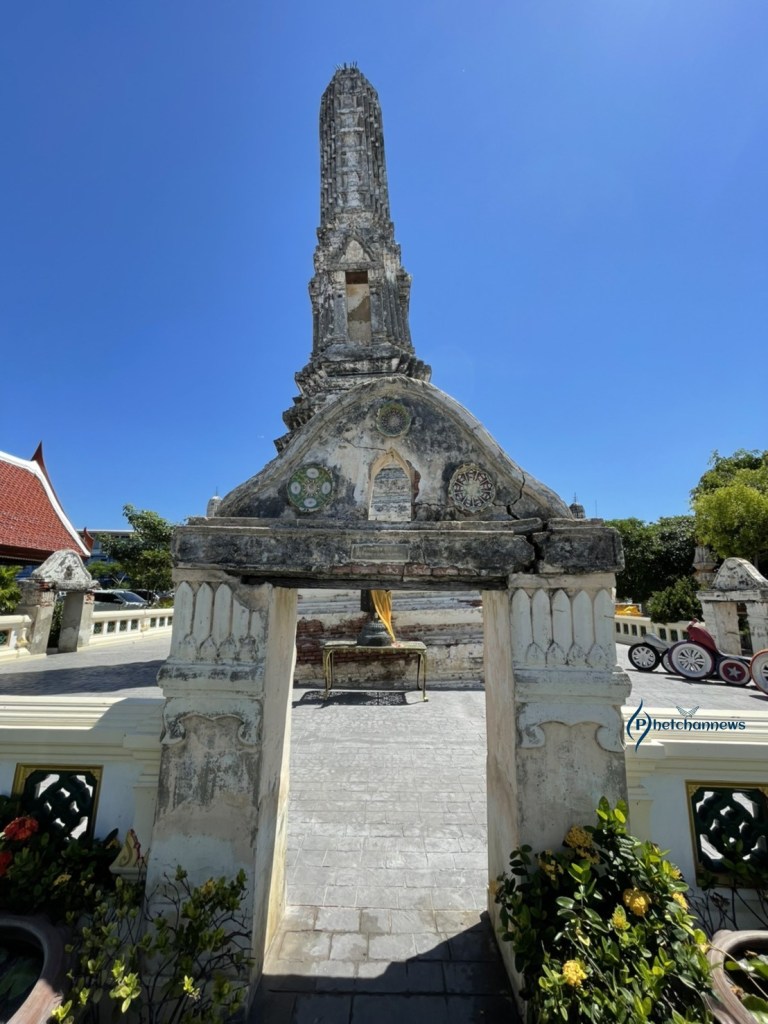 โดยรอบองค์พระปรางค์ มีการกั้นกำแพงแก้วประดับด้วยปรางค์ประจำทิศ ซึ่งแต่ละด้านของกำแพงแก้วจะมีซุ้มประตูเป็นทางเข้าสู่องค์พระปรางค์ ประเพณีที่สำคัญของที่นี่ คือ การห่มผ้าพระปรางค์ โดยแห่ผ้าแดงไปรอบๆ ชุมชน พร้อมทำพิธีบวงสรวง เพื่อเป็นการบูชาองค์พระปรางค์ และนำผ้าขึ้นห่มองค์พระปรางค์เอียง