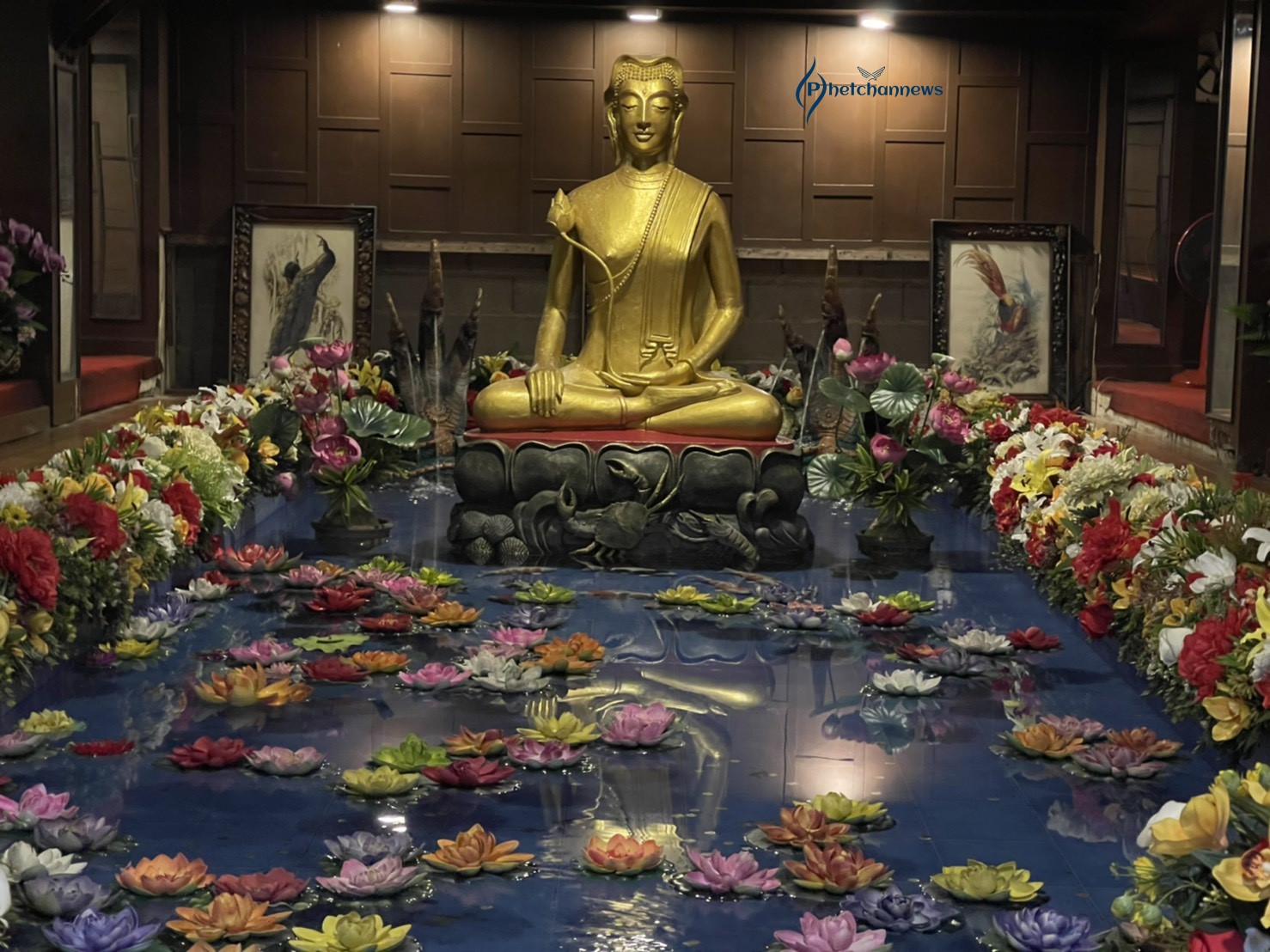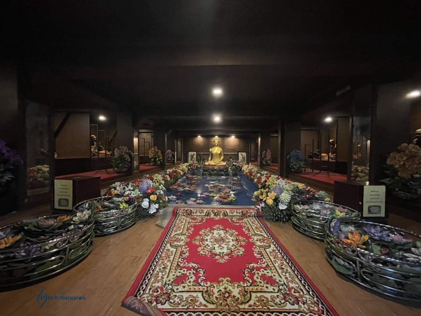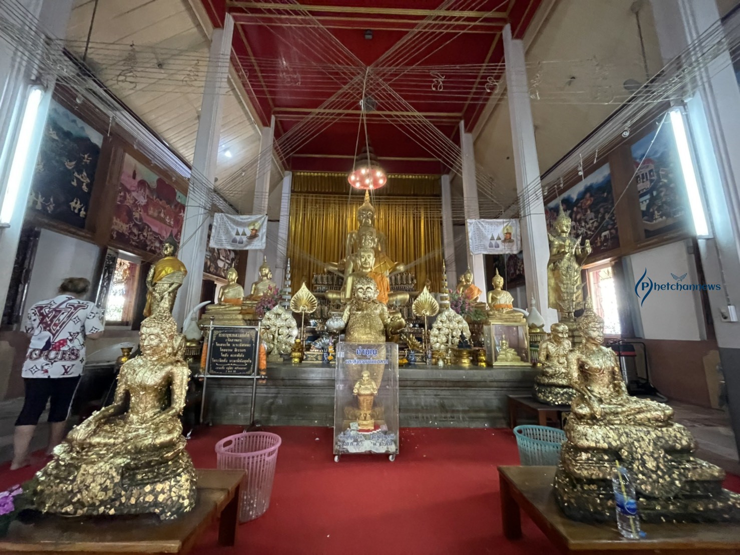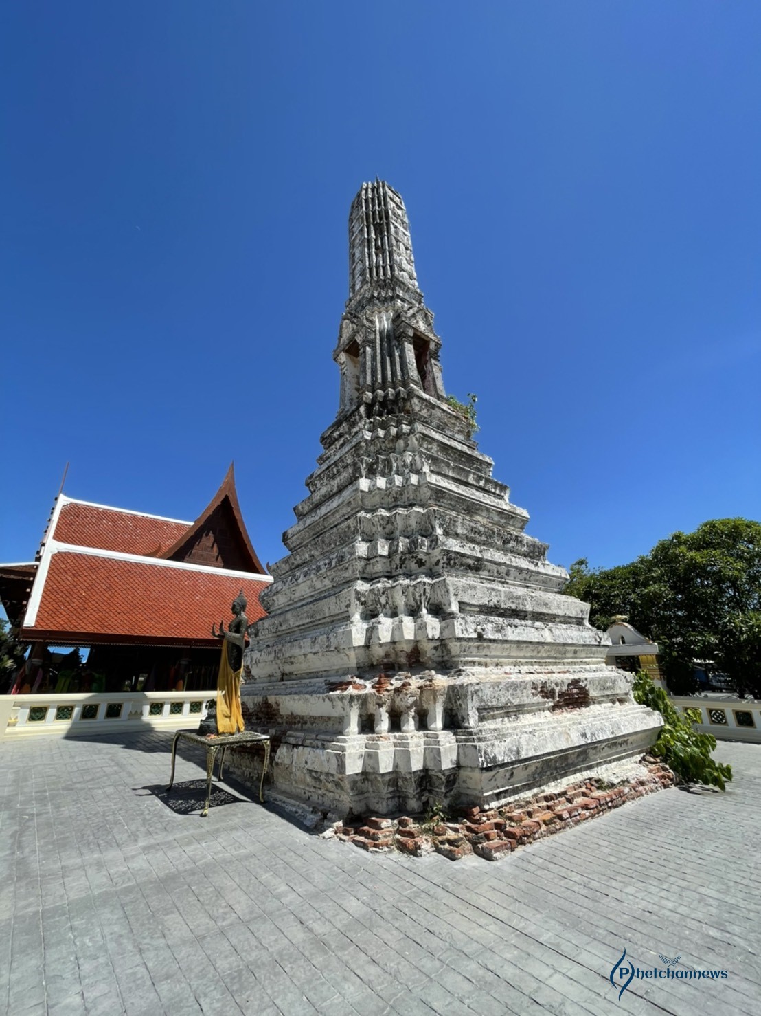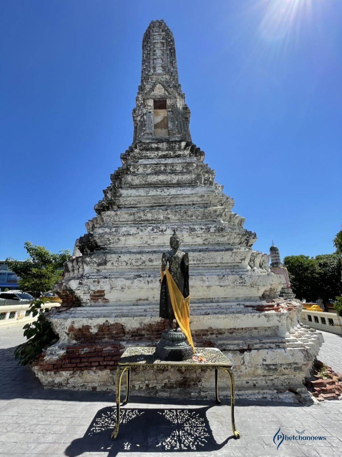 โดยรอบองค์พระปรางค์ มีการกั้นกำแพงแก้วประดับด้วยปรางค์ประจำทิศ ซึ่งแต่ละด้านของกำแพงแก้วจะมีซุ้มประตูเป็นทางเข้าสู่องค์พระปรางค์ ประเพณีที่สำคัญของที่นี่ คือ การห่มผ้าพระปรางค์ โดยแห่ผ้าแดงไปรอบๆ ชุมชน พร้อมทำพิธีบวงสรวง เพื่อเป็นการบูชาองค์พระปรางค์ และนำผ้าขึ้นห่มองค์พระปรางค์เอียง