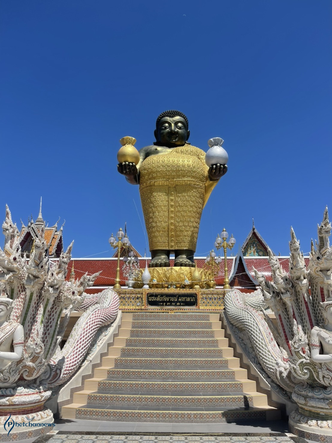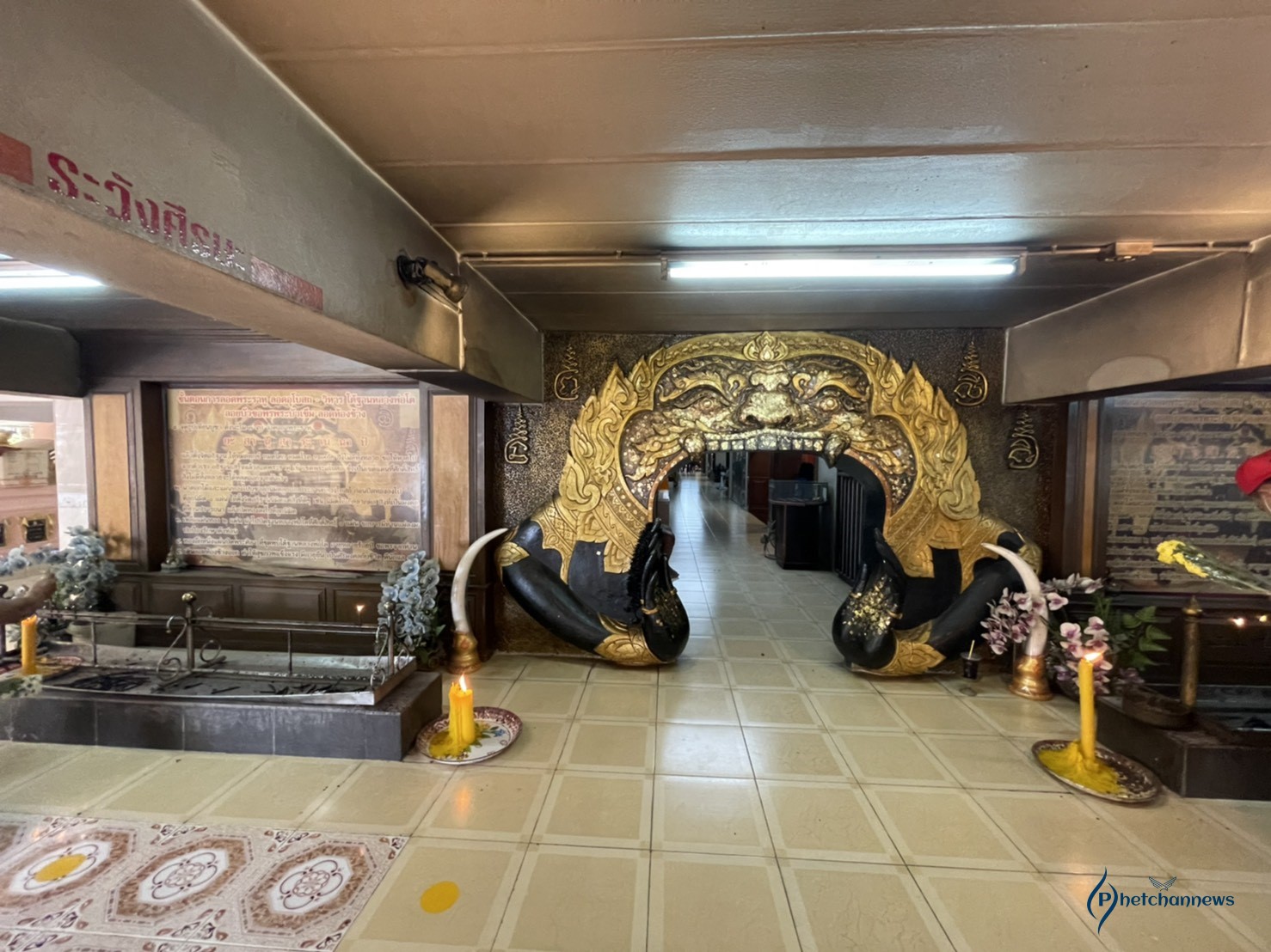 ภายในอุโบสถเป็นที่ประดิษฐานของ หลวงพ่อโต ส่วนด้านล่างอุโบสถ เปิดให้ลอดผ่านพระราหู เพื่อเป็นการสะเดาะเคราะห์ นอกจากนี้ ยังมี พระสังกัจจายน์องค์นี้มีขนาดใหญ่ และวิจิตรงดงาม ดูเด่นสะดุดตา ประดิษฐานอยู่บริเวณลานหน้าวัดสาขลา