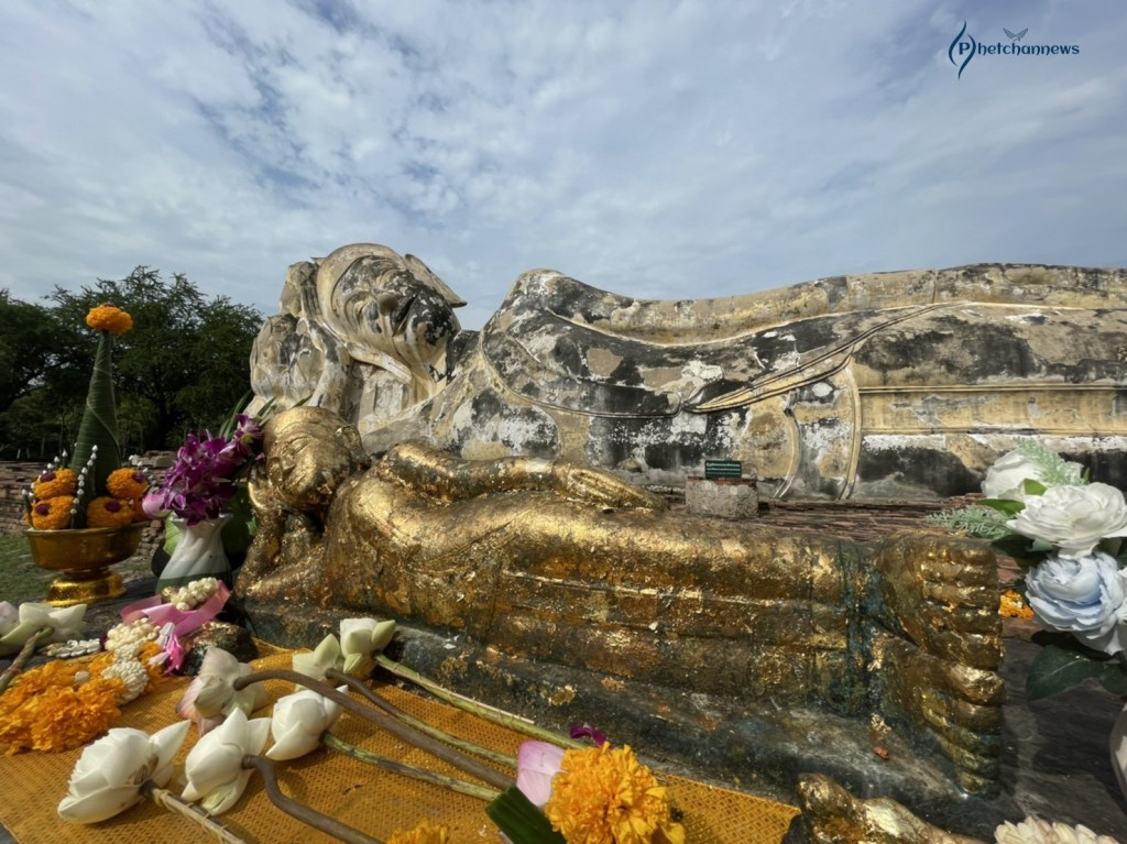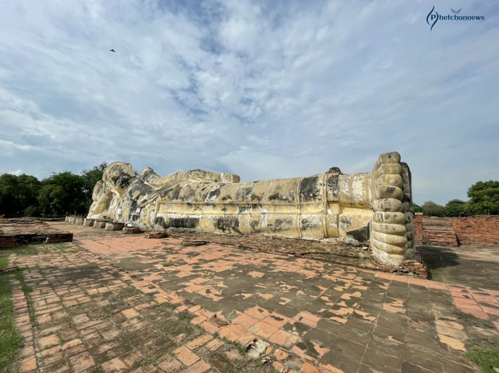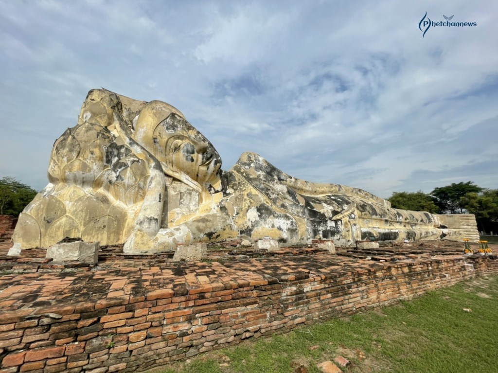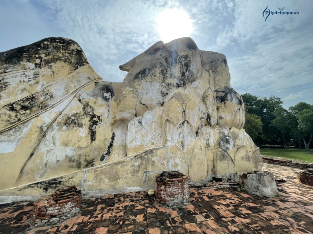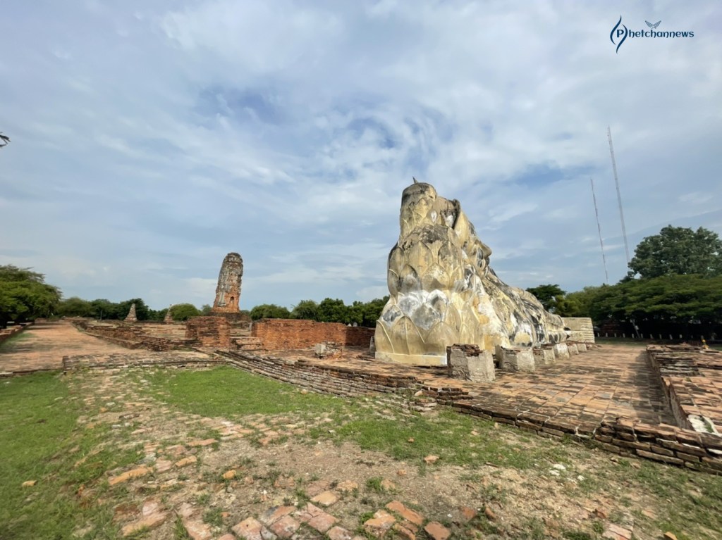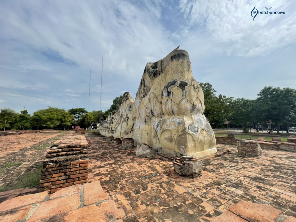 พระพุทธไสยาสน์ ปางไสยาสน์ องค์นี้มีขนาดใหญ่ที่สุดในเกาะเมืองอยุธยา ประดิษฐานอยู่กลางแจ้ง ก่ออิฐถือปูน มีความยาว 42 เมตร และสูง 8 เมตร พระพักตร์หันไปทางทิศเหนือ ที่พระเศียรมีดอกบัวรองรับ พระบาทซ้อนกันเป็นมุมฉาก นิ้วพระบาทยาวเท่ากัน มีดอกบัวเกยซ้อนรองรับพระเศียรแทนพระเขนย รอบองค์พระมีเสาอิฐ 8 เหลี่ยม รวม 24 ต้น ซึ่งแต่เดิมคงจะมีการสร้างวิหารครอบพระพุทธไสยาสน์ แต่ไม่ปรากฏหลักฐานว่าได้พังทลายลงเมื่อใด