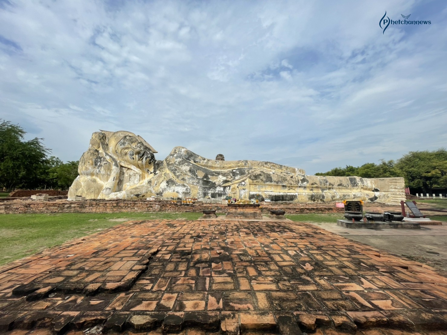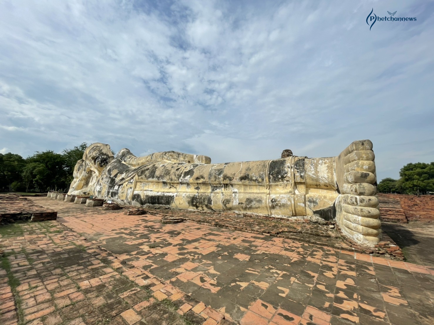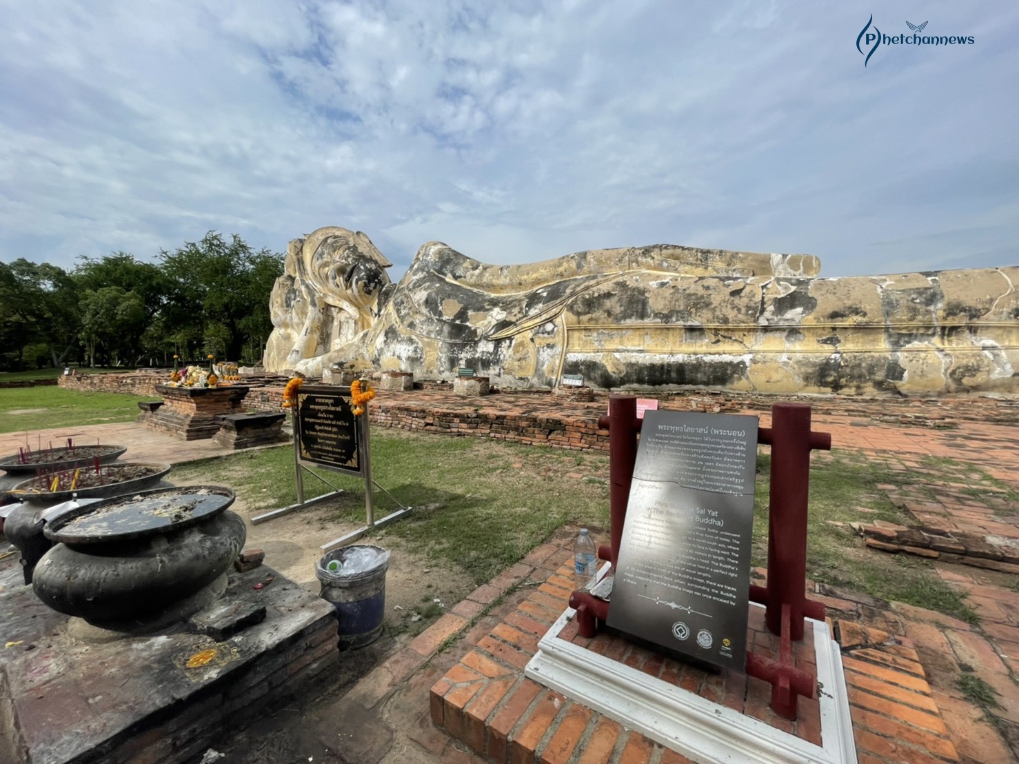 พระพุทธไสยาสน์ ปางไสยาสน์ องค์นี้มีขนาดใหญ่ที่สุดในเกาะเมืองอยุธยา ประดิษฐานอยู่กลางแจ้ง ก่ออิฐถือปูน มีความยาว 42 เมตร และสูง 8 เมตร พระพักตร์หันไปทางทิศเหนือ ที่พระเศียรมีดอกบัวรองรับ พระบาทซ้อนกันเป็นมุมฉาก นิ้วพระบาทยาวเท่ากัน มีดอกบัวเกยซ้อนรองรับพระเศียรแทนพระเขนย รอบองค์พระมีเสาอิฐ 8 เหลี่ยม รวม 24 ต้น ซึ่งแต่เดิมคงจะมีการสร้างวิหารครอบพระพุทธไสยาสน์ แต่ไม่ปรากฏหลักฐานว่าได้พังทลายลงเมื่อใด