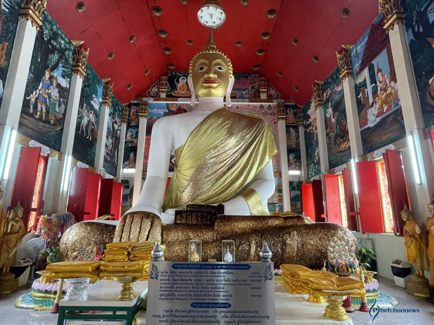 พระพุทธบุศโยภาส หรือ หลวงพ่อขาว พระประธานในวิหาร อยู่ทางด้านหลังพระอุโบสถ วัดสาม เป็นพระพุทธรูปปางมารวิชัย ขนาดหน้าตักกว้าง 3 วา 1 คืบ สูง 4 วา ก่อด้วยอิฐพอกปูนทาสีขาว สร้างในปี พ.ศ. 2451 เป็นพระพุทธรูปศักดิ์สิทธิ์องค์หนึ่งของชาวลาดกระบัง มีความเชื่อกันว่าหากขอพรแล้วได้ดั่งหวัง สิ่งของที่นำมาถวาย ได้แก่ พวงมาลัย 7 สี 7 ศอก ปลาตะเพียน อาหารคาวหวาน