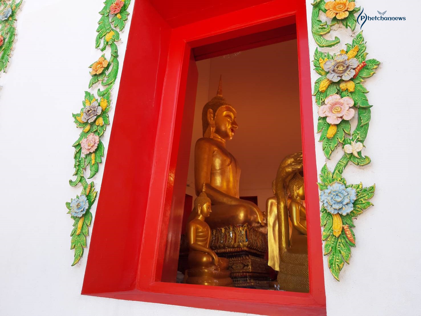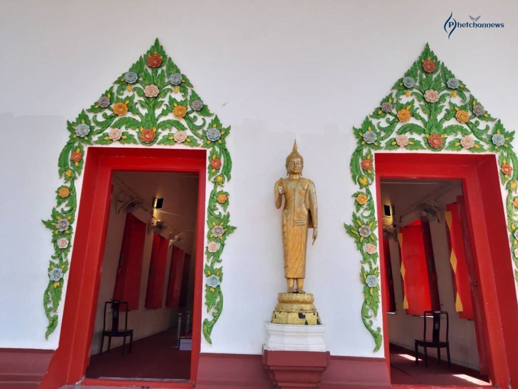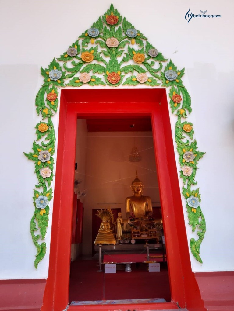 พระพุทธรัตนมหาพรม เป็นพุทธรูปก่ออิฐถือปูนปางมารศรีวิชัย มีพระพักต์เบิกกว้าง พระสรวลยิ้มสีแดง ประดิษฐานอยู่ภายในพระอุโบสถสีขาว หน้าบันของพระอุโบสถเป็นปูนปั้นลายดอกไม้