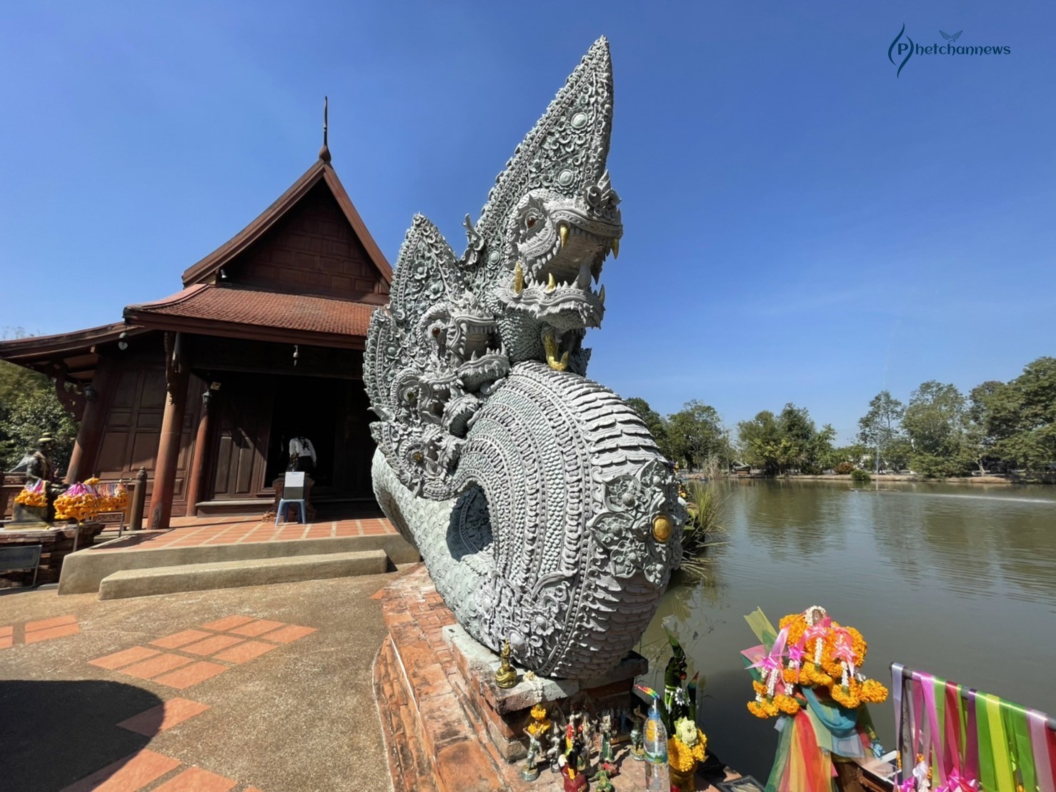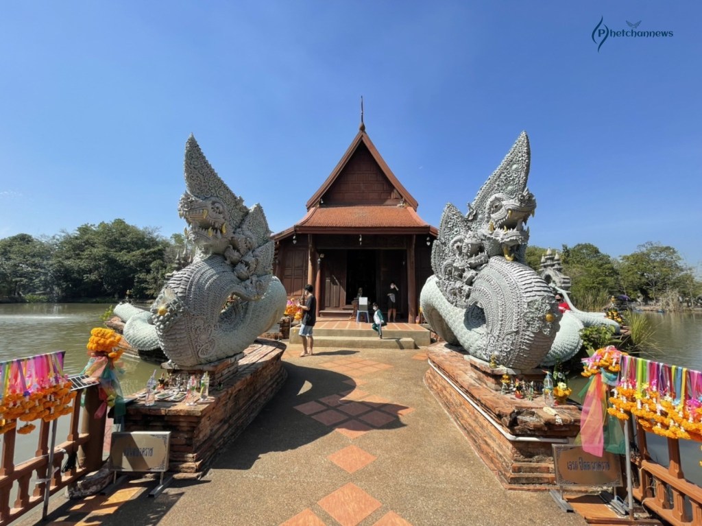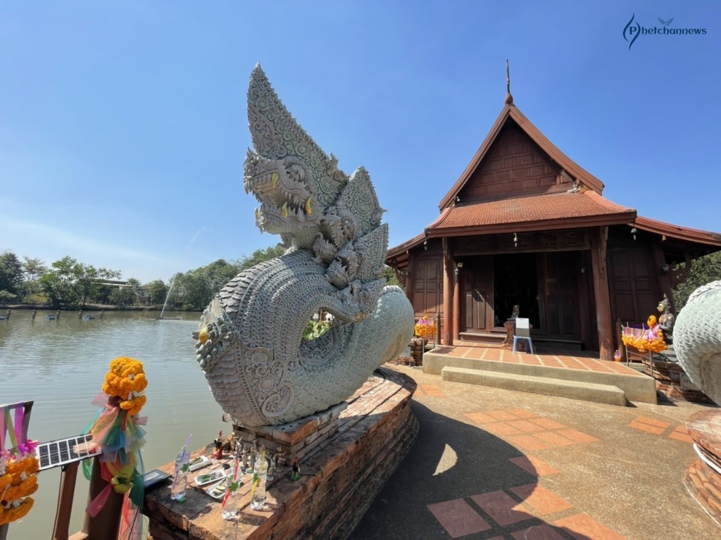 ผู้มีจิตศรัทธามีความเชื่อว่าวัดป่าคลอง 11 นี้ มีพญานาคปกปักรักษาอยู่ โดย “โบสถ์ไม้กลางสระน้ำ” ล้อมรอบด้วยรูปปั้นแกะสลักพญานาคขนาดใหญ่ 4 ตัว เฝ้าอยู่บริเวณสะพานที่ทอดยาวมายังโบสถ์กลางน้ำ บริเวณด้านหน้าโบสถ์มีศาลาให้สักการะองค์ปู่ศรีสุทโธและย่าศรีปทุมมา ลักษณะภูมิทัศน์ของวัดประชาชนจึงกล่าวขานวัดป่าคลอง11 เป็น คำชะโนด 2