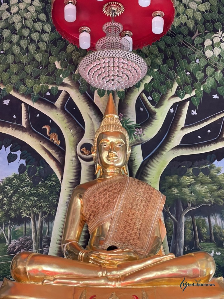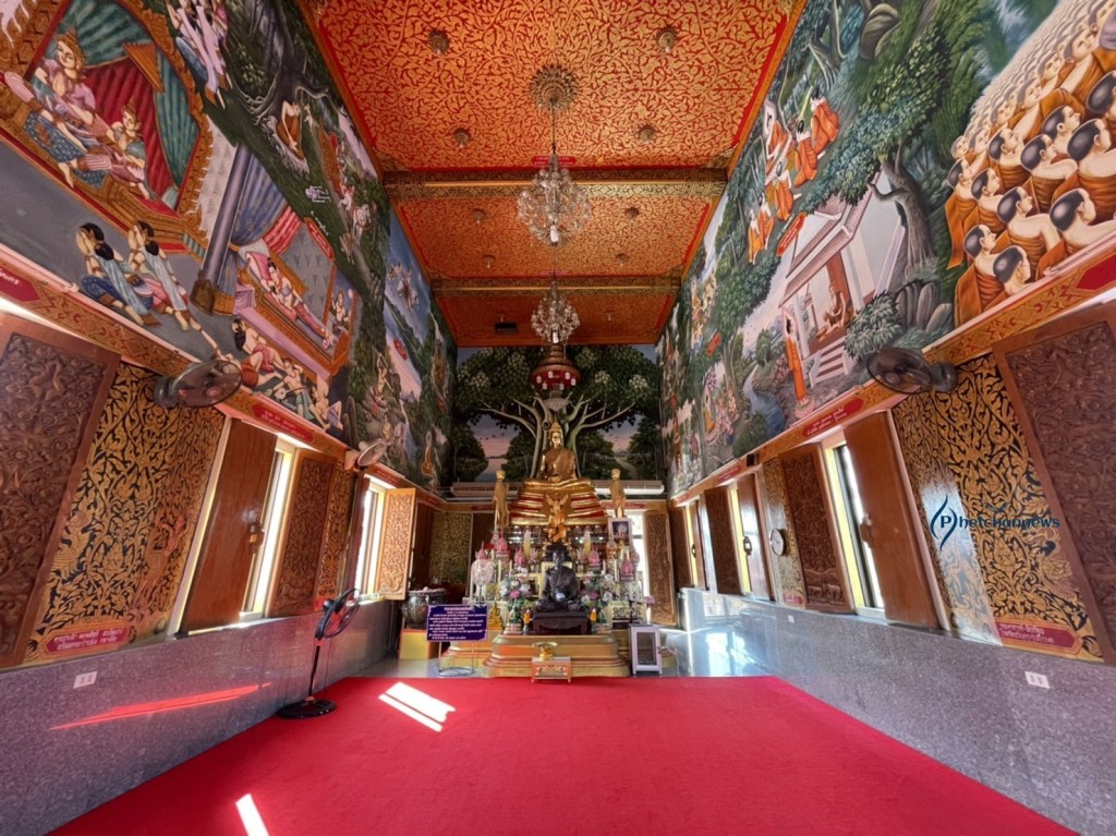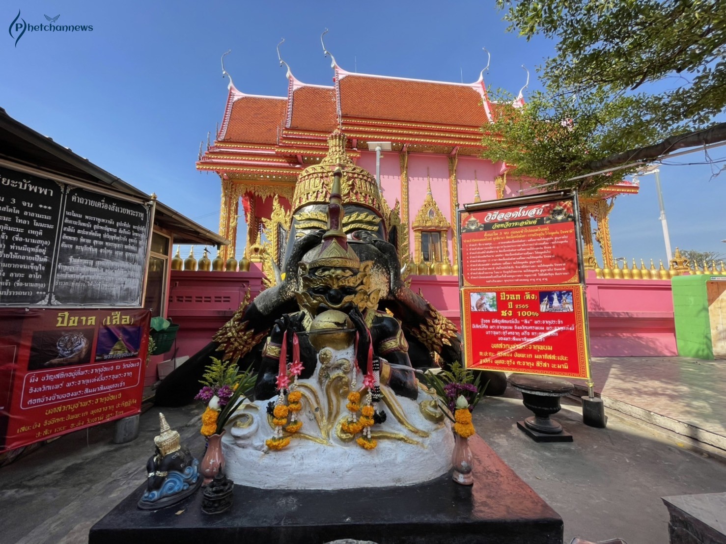 สำหรับพระอุโบสถนี้ก่อนนั้นเป็นโบสถ์ป่า ใช้เวลาก่อสร้าง 2 ปี ตั้งอยู่บนหลังพระราหู ส่วนพระประธานในพระอุโบสถเป็นพระพุทธรูปหลวงพ่อโสธรปางสมาธิ ใต้ถุนพระอุโบสถเป็นรูปพระราหูมีญาติโยมนำสิ่งของมาถวายพระราหูก่อนรอดใต้ถุนพระอุโบสถเพื่อความเป็นสิริมงคล