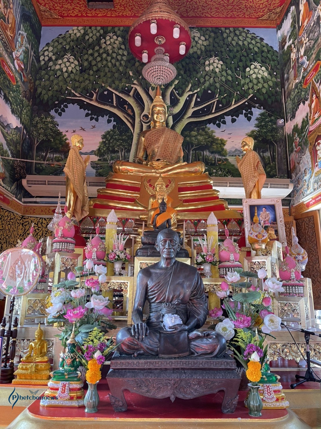 สำหรับพระอุโบสถนี้ก่อนนั้นเป็นโบสถ์ป่า ใช้เวลาก่อสร้าง 2 ปี ตั้งอยู่บนหลังพระราหู ส่วนพระประธานในพระอุโบสถเป็นพระพุทธรูปหลวงพ่อโสธรปางสมาธิ ใต้ถุนพระอุโบสถเป็นรูปพระราหูมีญาติโยมนำสิ่งของมาถวายพระราหูก่อนรอดใต้ถุนพระอุโบสถเพื่อความเป็นสิริมงคล