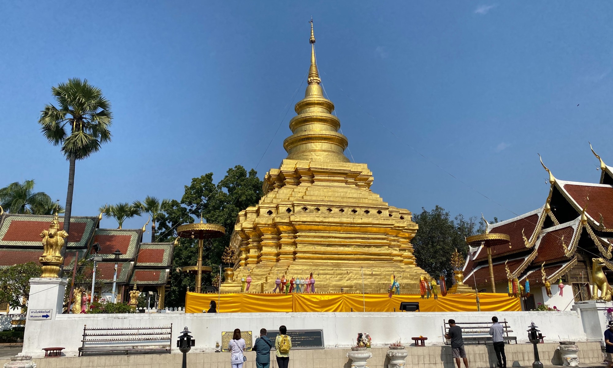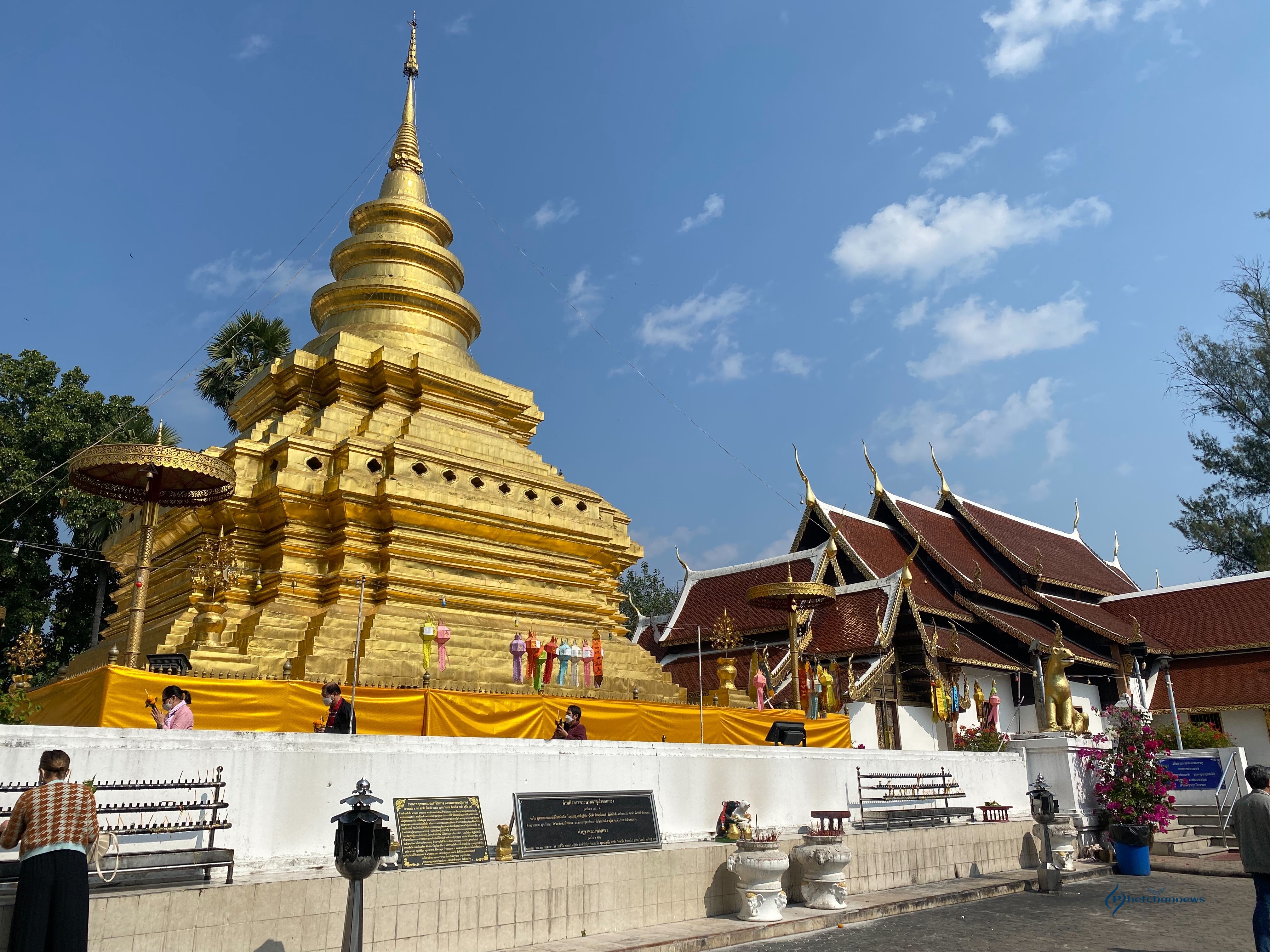 ดอยจอมทอง มีสัณฐานเป็นภูเขาดินสูงจากระดับพื้นที่ราบอื่น ยอดดอยลูกนี้ในสมัยพุทธกาล มีเมือง ๆ หนึ่งชื่อว่า “เมืองอังครัฏฐะ” เจ้าผู้ครองเมืองนั้นชื่อว่า พระยาอังครัฏฐะ พระยาอังครัฏฐะ ได้ทราบข่าวจากพ่อค้าที่มาจากอินเดียว่า “บัดนี้พระพุทธเจ้าบังเกิดขึ้นแล้ว ในโลกนี้” เวลานี้ประทับอยู่เมืองราชคฤห์ ในประเทศอินเดีย จึงอธิษฐานขอให้พระพุทธเจ้าเสด็จมาโปรด พระพุทธองค์ทรงทราบด้วยพระญาณแล้วจึงเสด็จมาสู่เมืองอังครัฏฐะ ทรงแสดงธรรมและทรงพยากรณ์ ไว้ว่า “เมื่อเราตถาคตนิพพานแล้วธาตุพระเศียรเบื้องขวาของเราจักมาประดิษฐานอยู่ ณ ดอยจอมทอง แห่งนี้” แล้วเสด็จกลับ