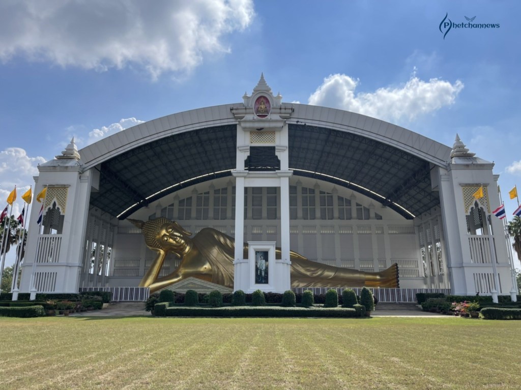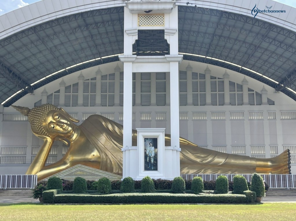 ในวัดมีพระนอนหรือพระพุทธไสยาสน์สีทองมีขนาด ยาว 55 เมตร มีวิหารครอบ เป็นวัดที่เกิดจากศรัทธาของประชาชน นอกจากนี้ยังมีวิหารหลวงพ่อเขียน เกจิอาจารย์ ชื่อดัง เปิดให้ทุกคนเข้าไปสักการะขอพรได้ทุกวัน