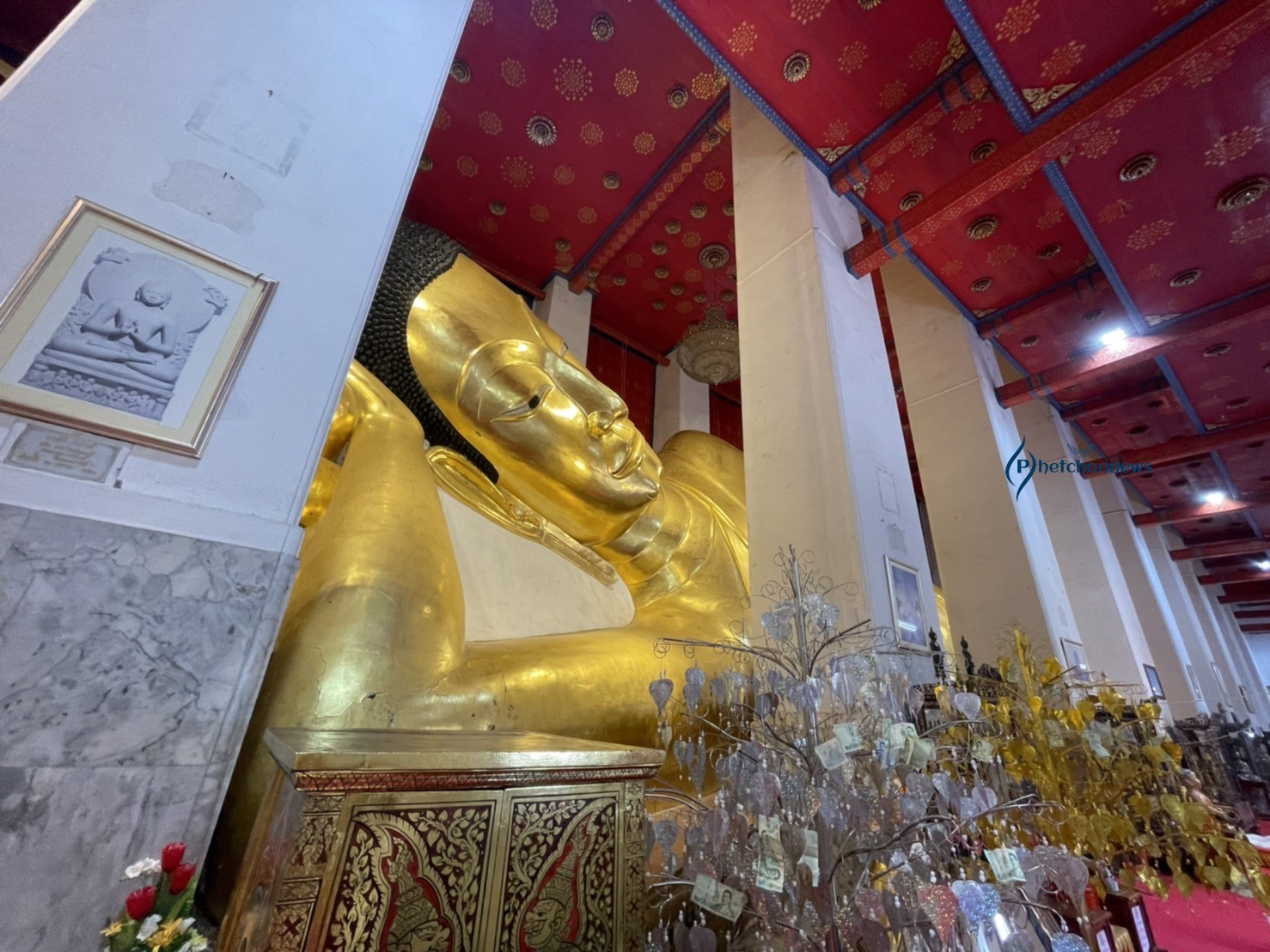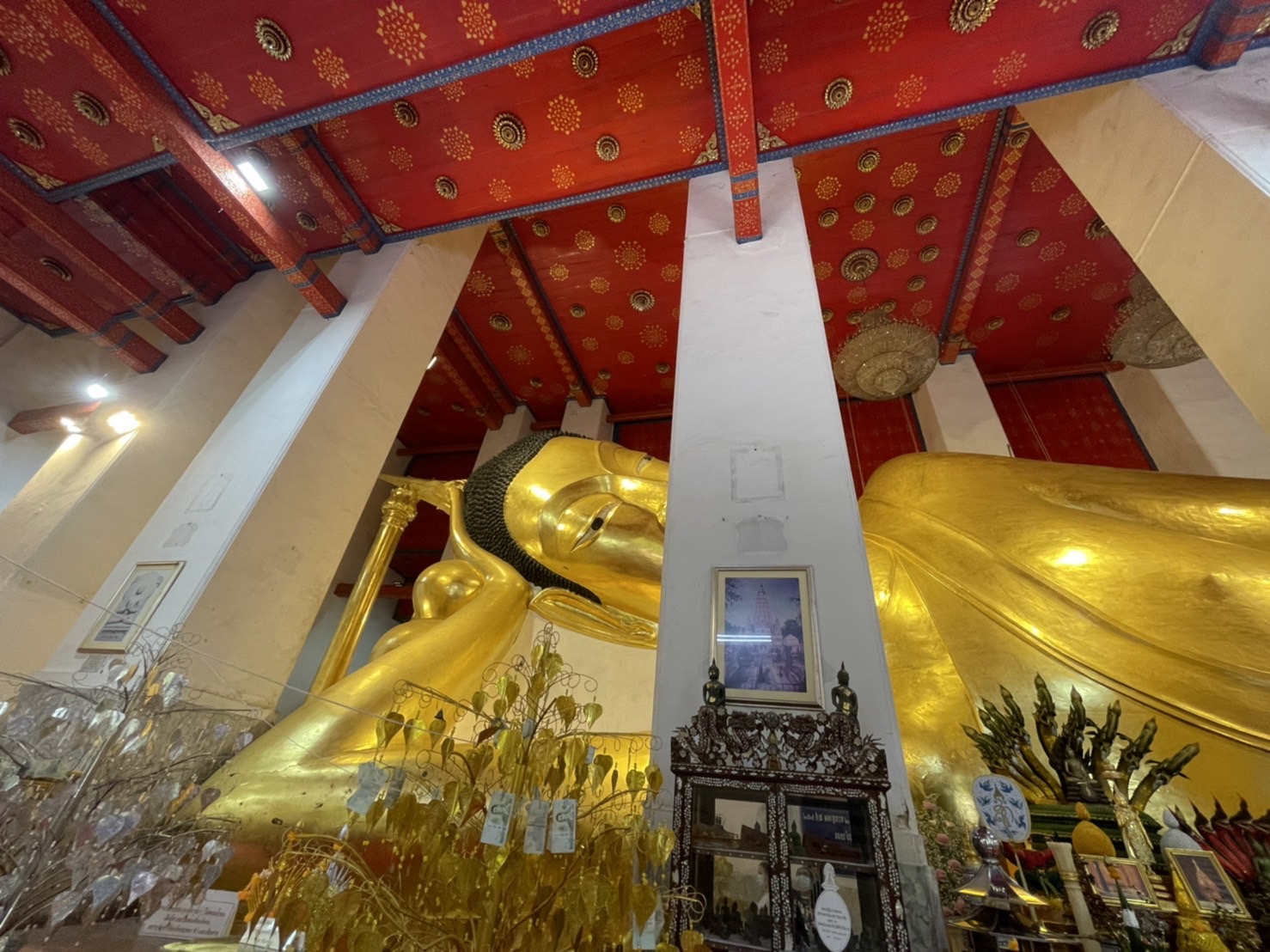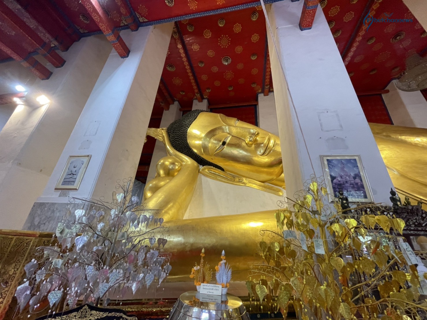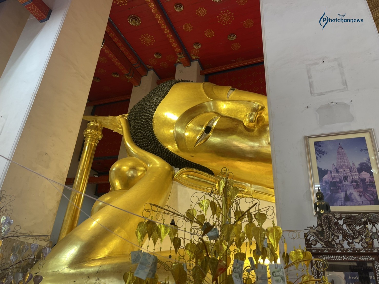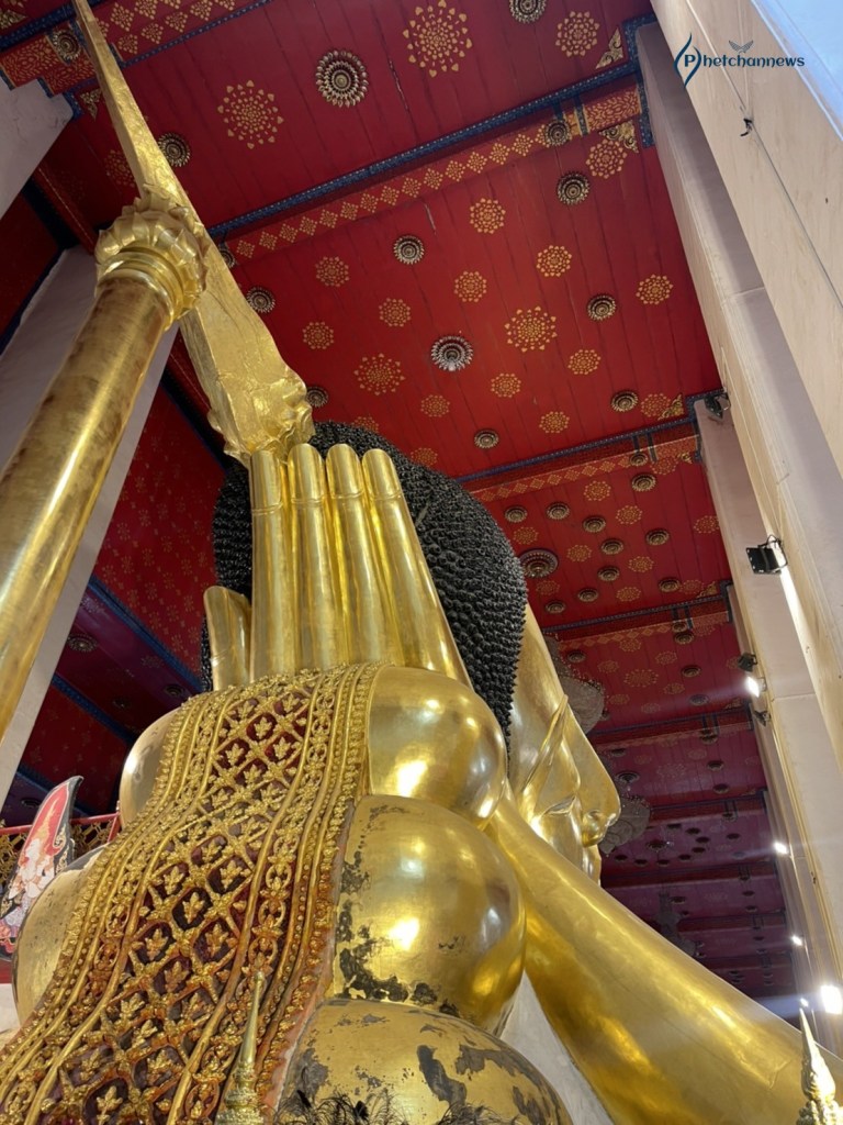 พระนอนจักรสีห์ เป็นพระพุทธรูปสุโขทัยที่มีความอ่อนช้อยงดงามมาก ยาว 47 เมตร 42 เซนติเมตร มีลักษณะพระพักตร์ หันไปทางทิศเหนือ พระเศียรหันไปทางทิศตะวันออก ด้วยขนาดที่มีความใหญ่และสวยงาม พระนอนจักรสีห์เป็นที่ยึดเหนี่ยวจิตใจของชาวบ้านในพื้นที่จังหวัดสิงห์บุรี