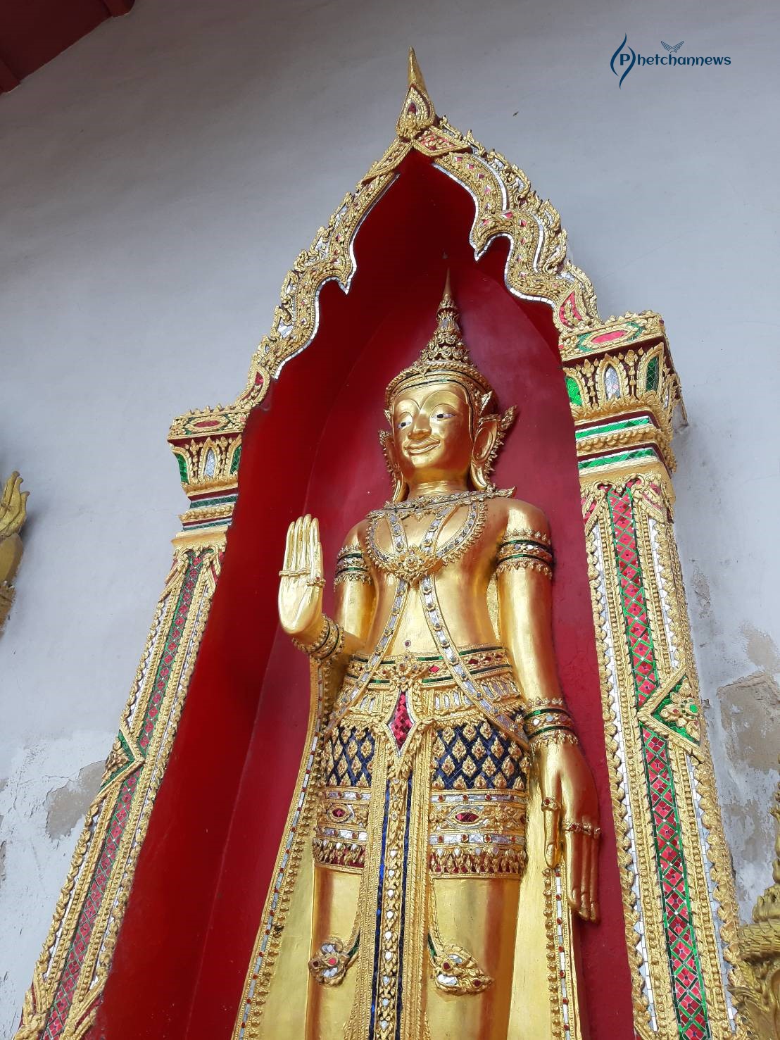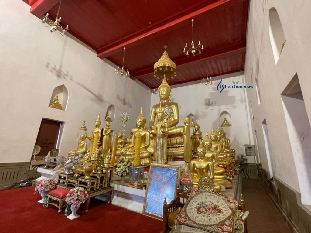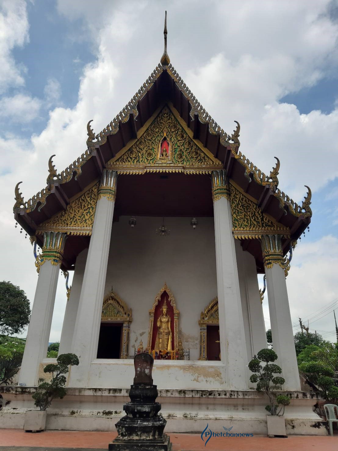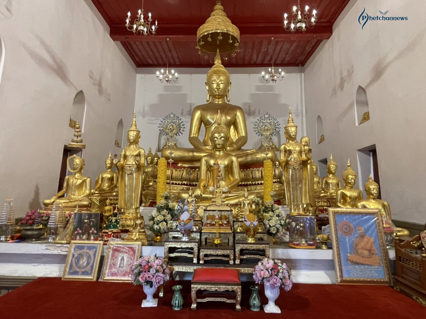 อุโบสถเป็นอาคารก่ออิฐถือปูนขนาด 6 ห้อง มีมุขยื่นทั้งด้านหน้าและด้านหลัง หน้าบันไม้จำหลักลายรูปเทวดาประทับในปราสาทล้อมรอบด้วยลายก้านต่อดอกและเทพพนม บานประตูหน้าต่างจำหลักเป็นลวดลาย มีซุ้มจระนำประดิษฐานพระพุทธรูปทรงเครื่องปางห้ามญาติขนาดสูงเท่าคนปกติ นามว่า “หลวงพ่อเก้า” ซึ่งเป็นพระพุทธรูปศักดิ์สิทธิ์ของวัดค้างคาว